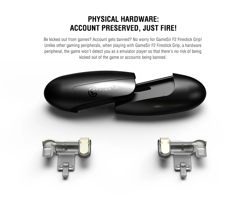 Was kicked out of the game? Account banned? Don't worry about the GameSir F2 Firestick Grip! Unlike other gaming peripherals, when playing games with the GameSir F2, the game will not recognize you as an emulator player, so you will not be kicked out of the game or your account will not be banned.
