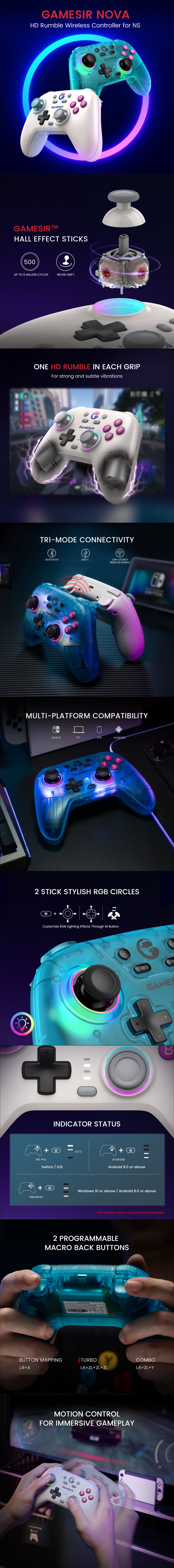 2 custom back keys (supporting A/B/X/Y/L/R/ZL/ZR/A/B/X/Y/-/+/screenshot/Home setting combo function);