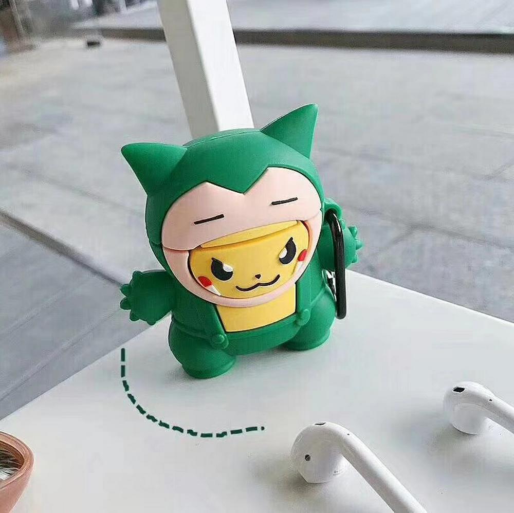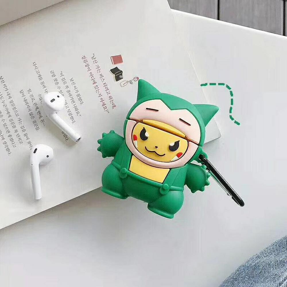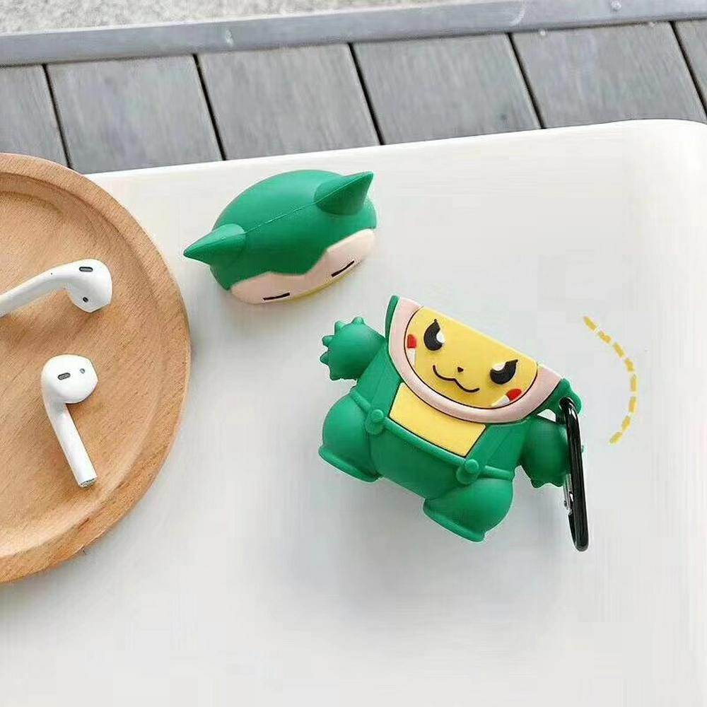 Green Pikachu Airpods Case Keychain AirPod Earbud Charging Bluetooth Earphone Protective Hard Cover Case