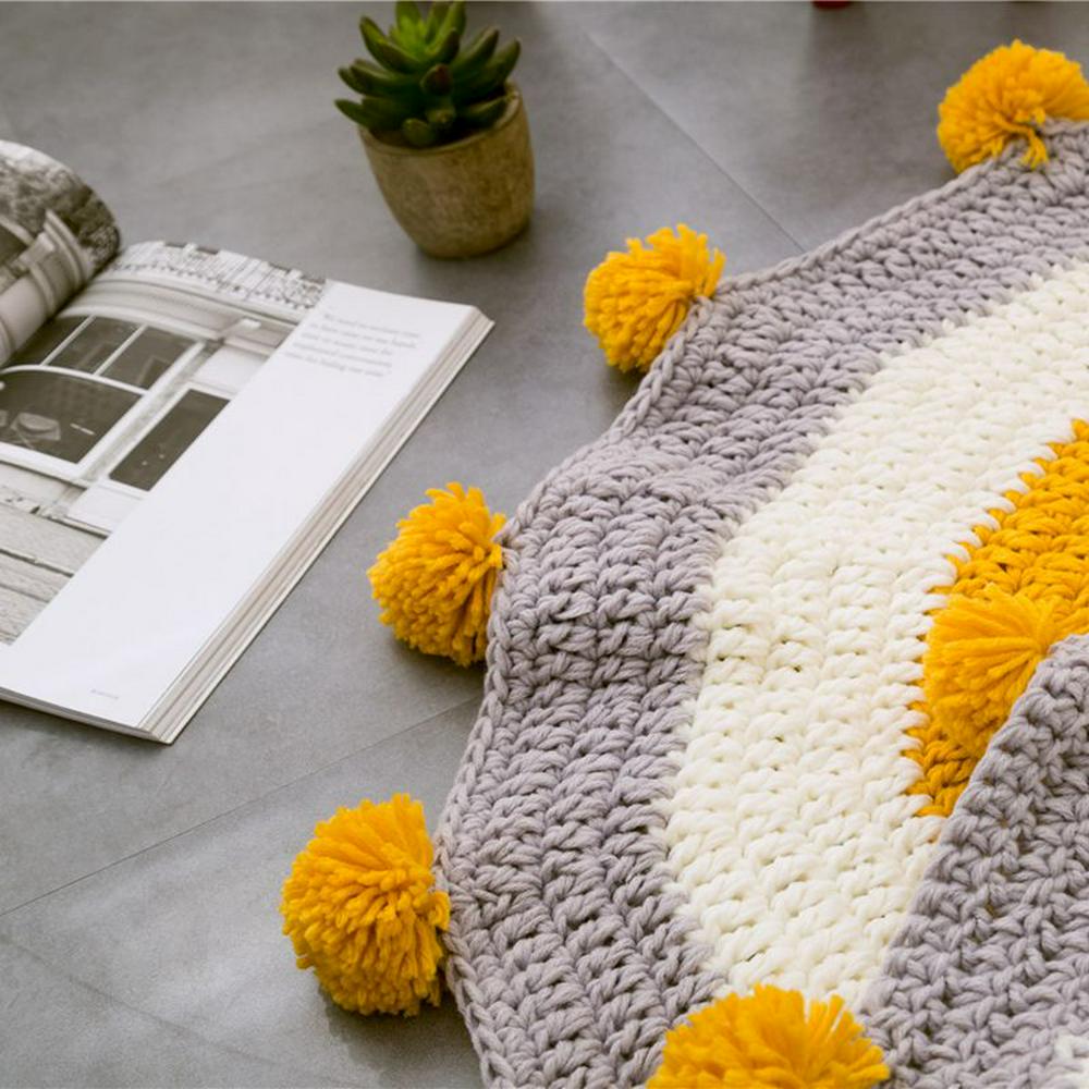 A carpet is with cartoon animal pattern, the other is with pom-pom. Choose the one you prefer a special view