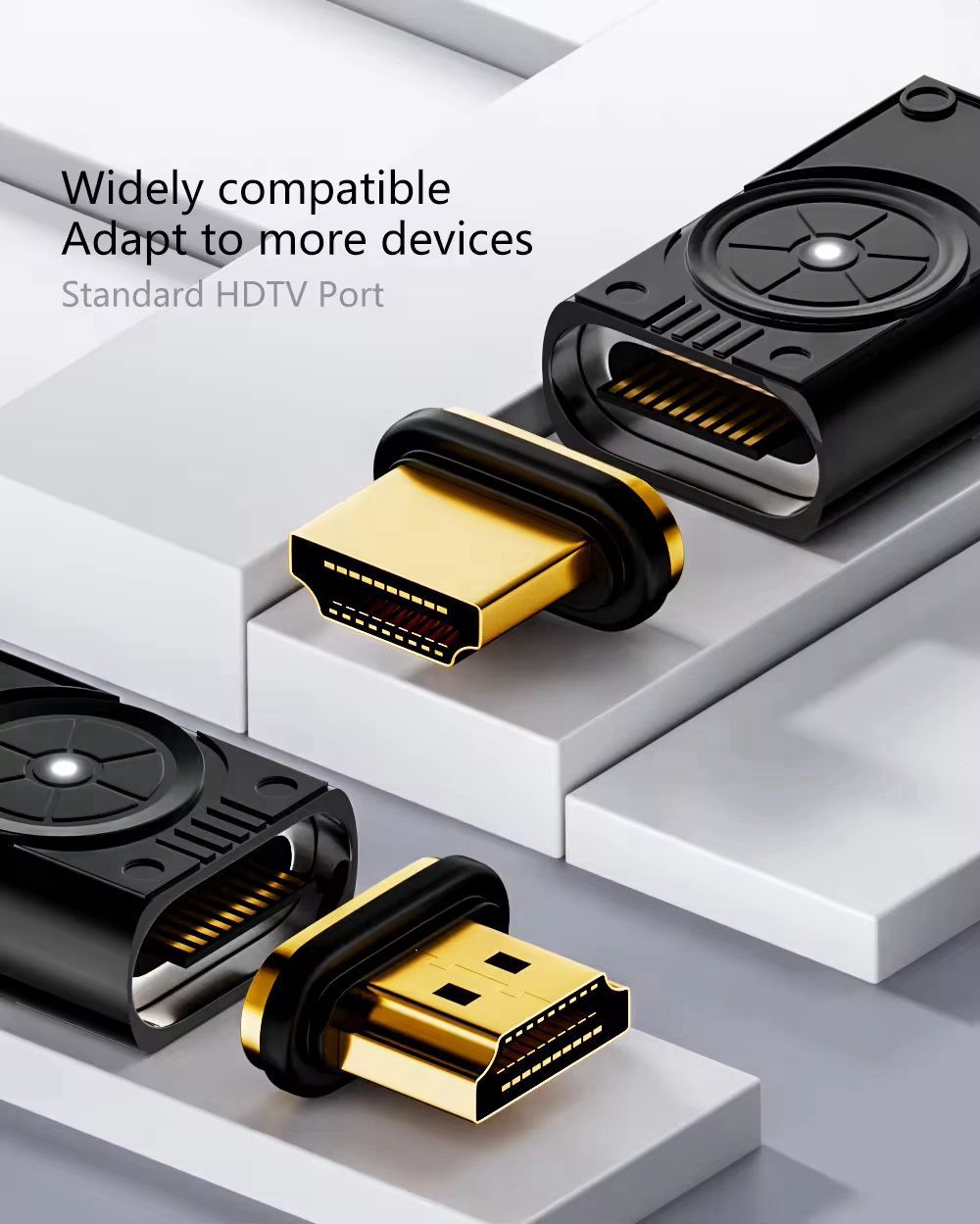 1.19-Pin Metal Magnetic Connector: The 8K HDMI-Compatible 2.1magnetic adapter features a new magnetic design with 19 gold-plated pin contacts, allowing for quick and secure connections. It prevents wear and tear on HD cables and device input ports, reduces the risk of detachment, and offers a strong magnetic connection that can withstand accidental disconnections, thereby prolonging its lifespan.