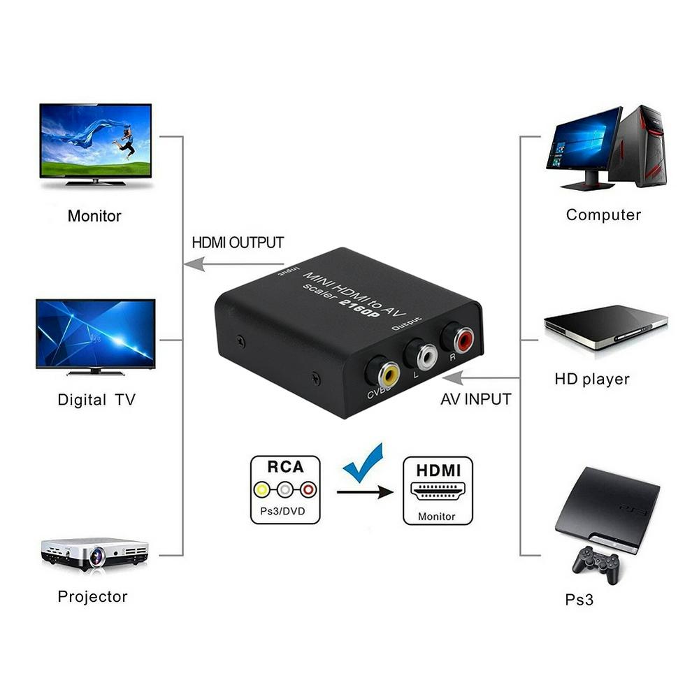 HDMI to RCA/AV Adpater 2016P HDMI to 3RCA Scaler Plug and Play Convert for PC Laptop HDTV DVD