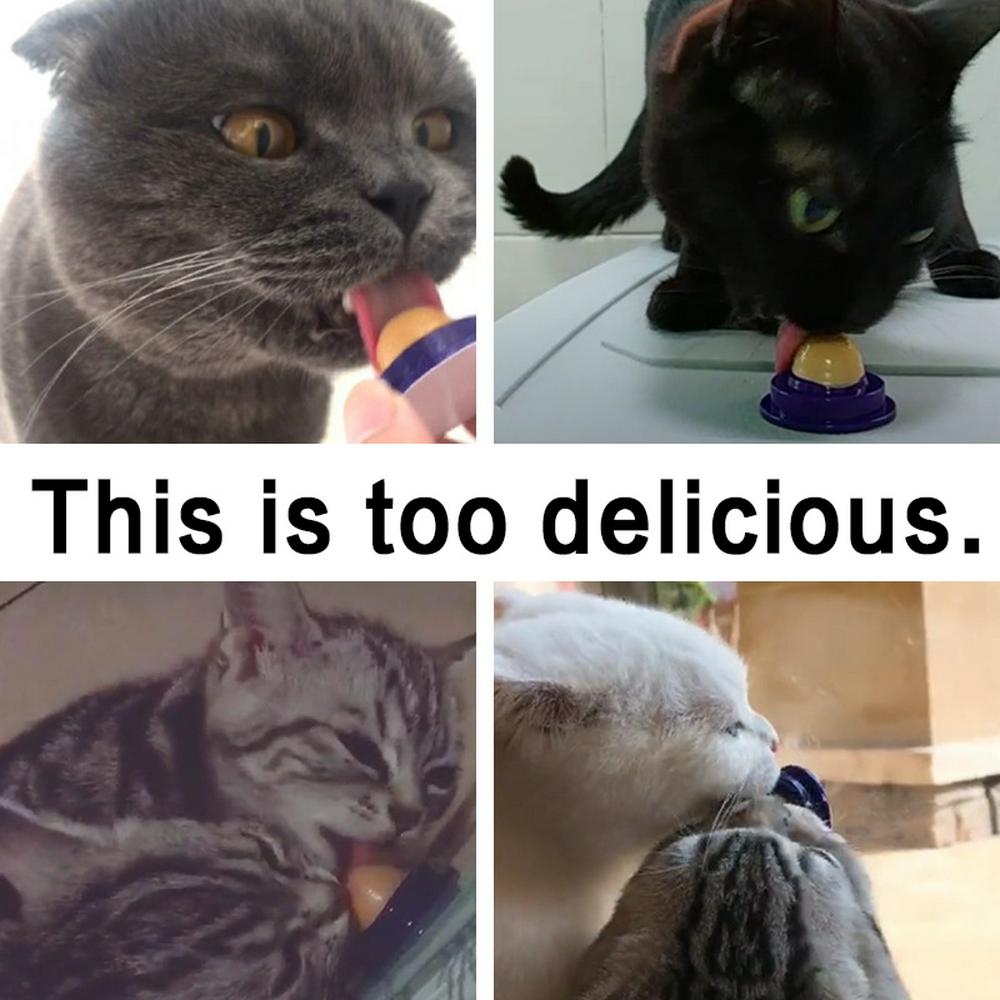 There is tape behind the base of the candy, which can be fixed on the table legs, chair legs, the ground, etc., facilitate the cat licking.
