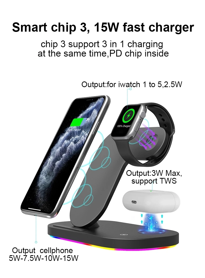 1.Product Name:Timess 3IN1 Wireless Charger Stand For Phone Watch Earphones