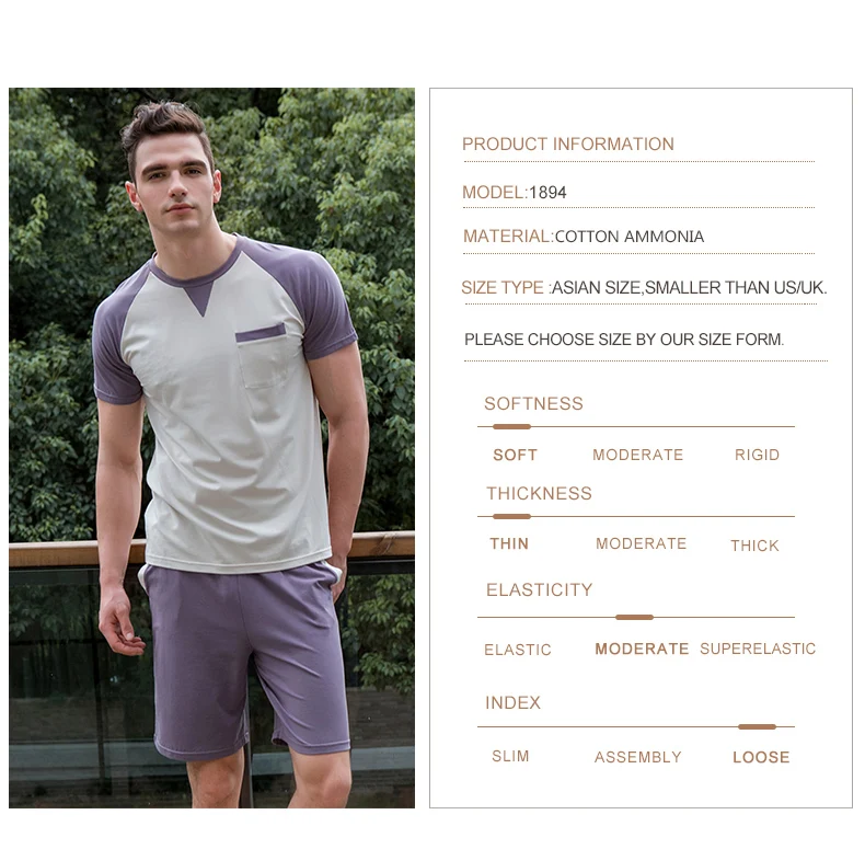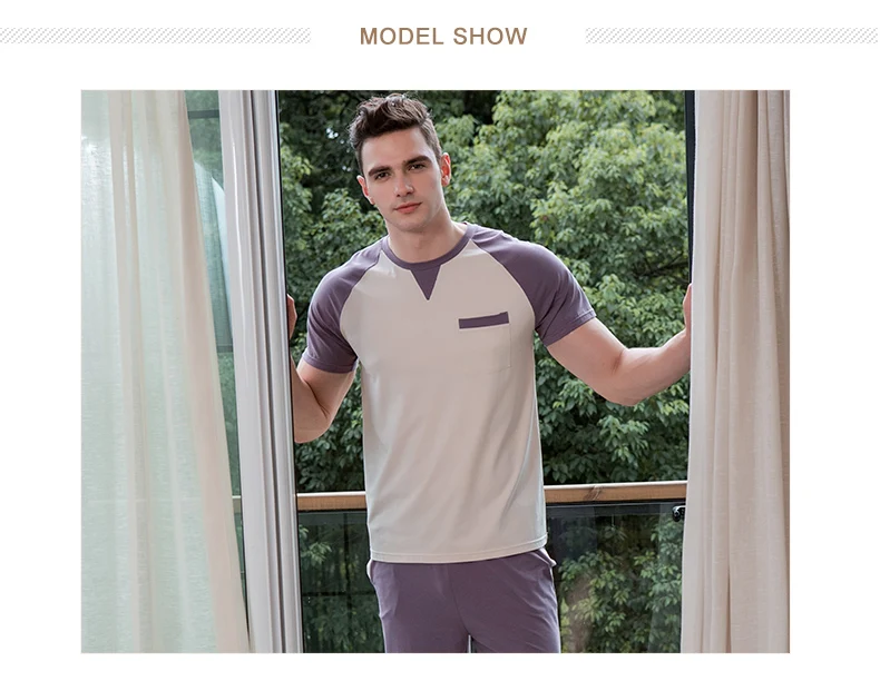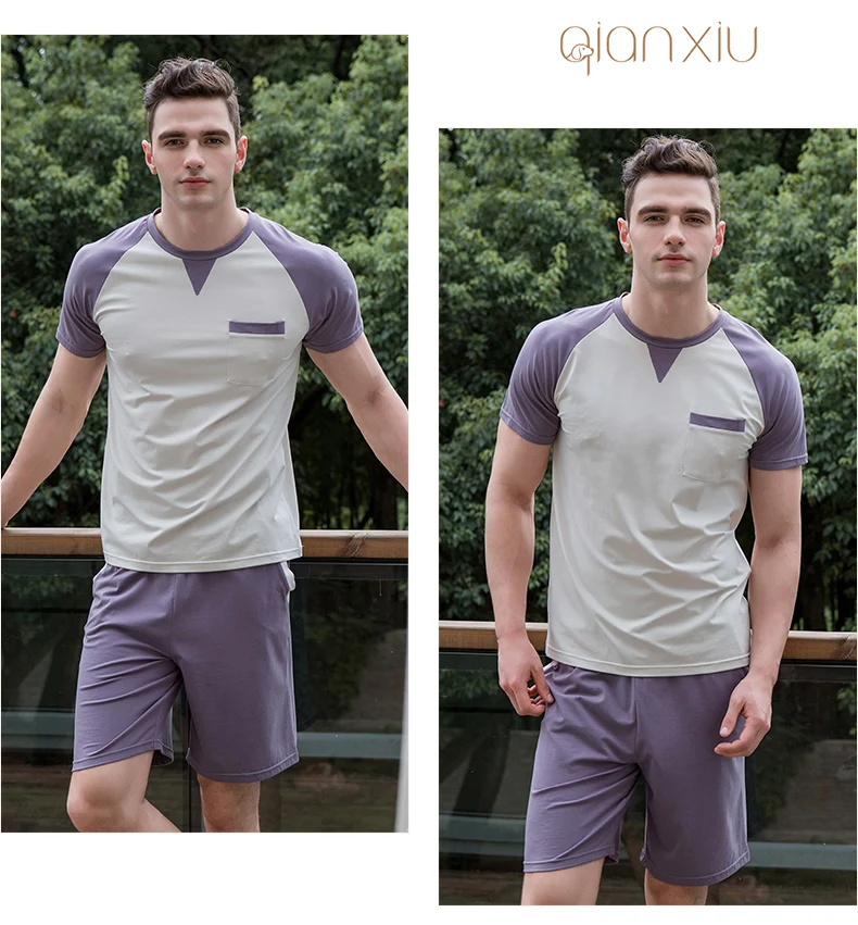 Hit Color Pure Cotton Tops + Trousers Men's Pajamas Sleepwear Homewear Pajama Loungewear Underwear