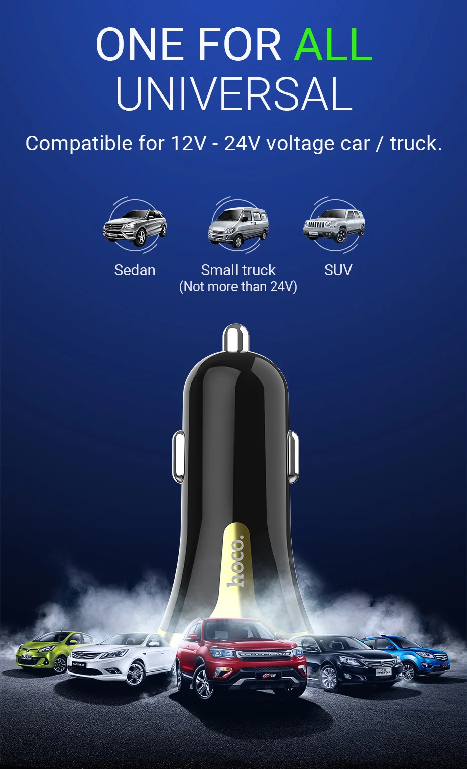 Compatible para coche/camión de voltaje de 12 V-24 V.