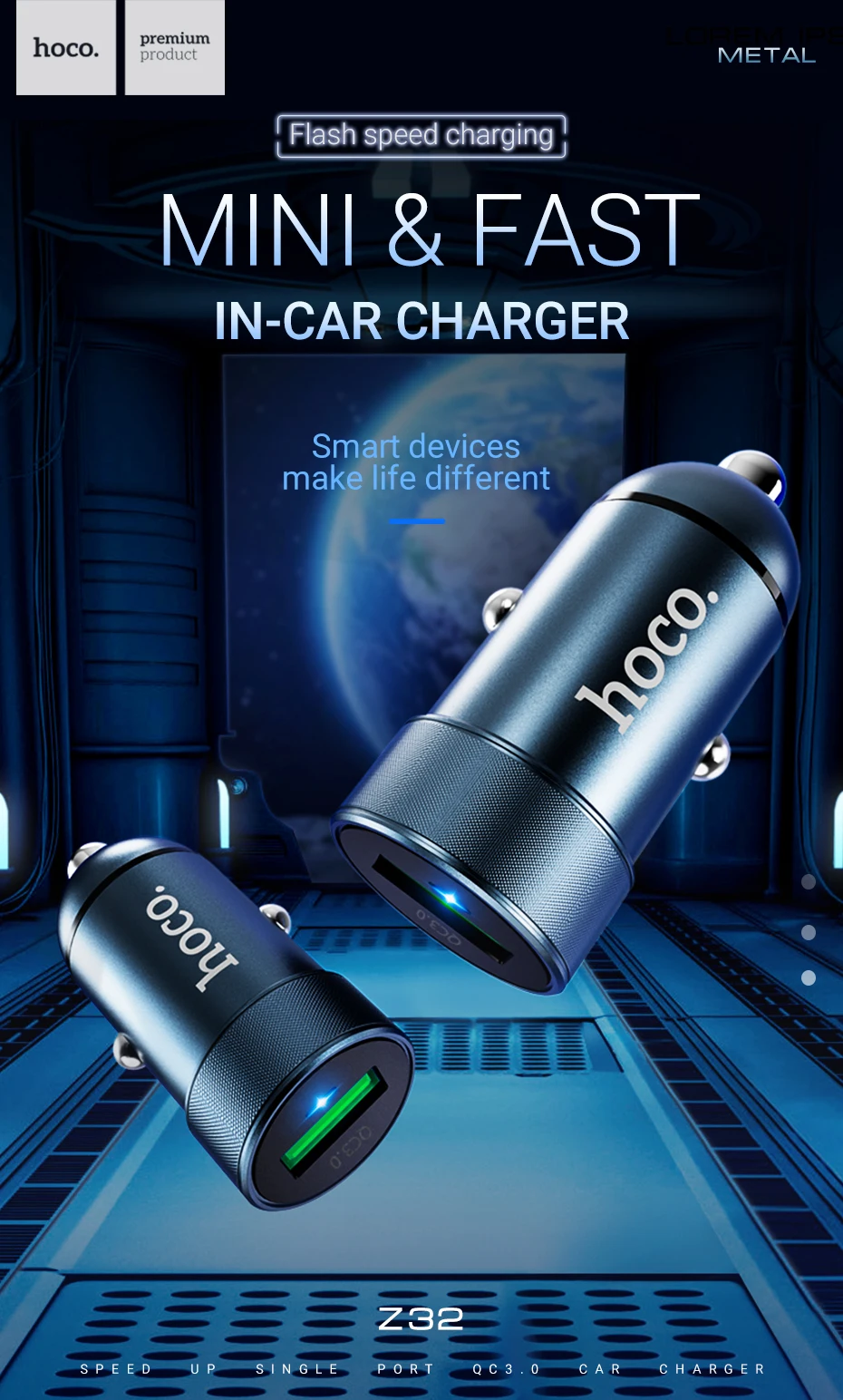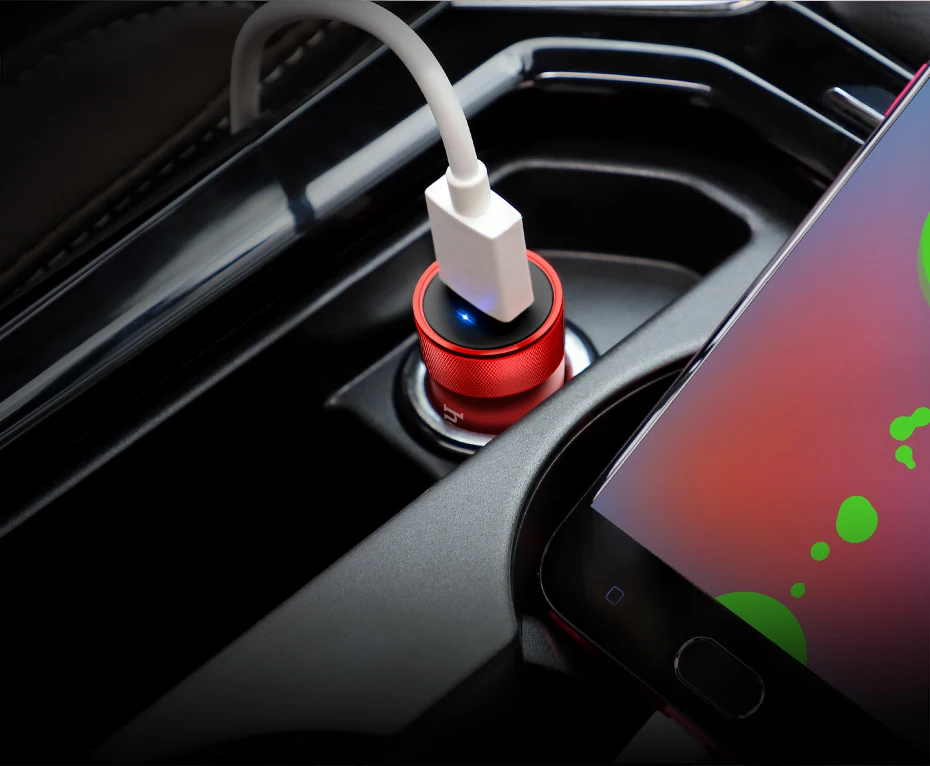 Mini y cargador rápido en el coche. Los dispositivos inteligentes hacen que la vida sea diferente.