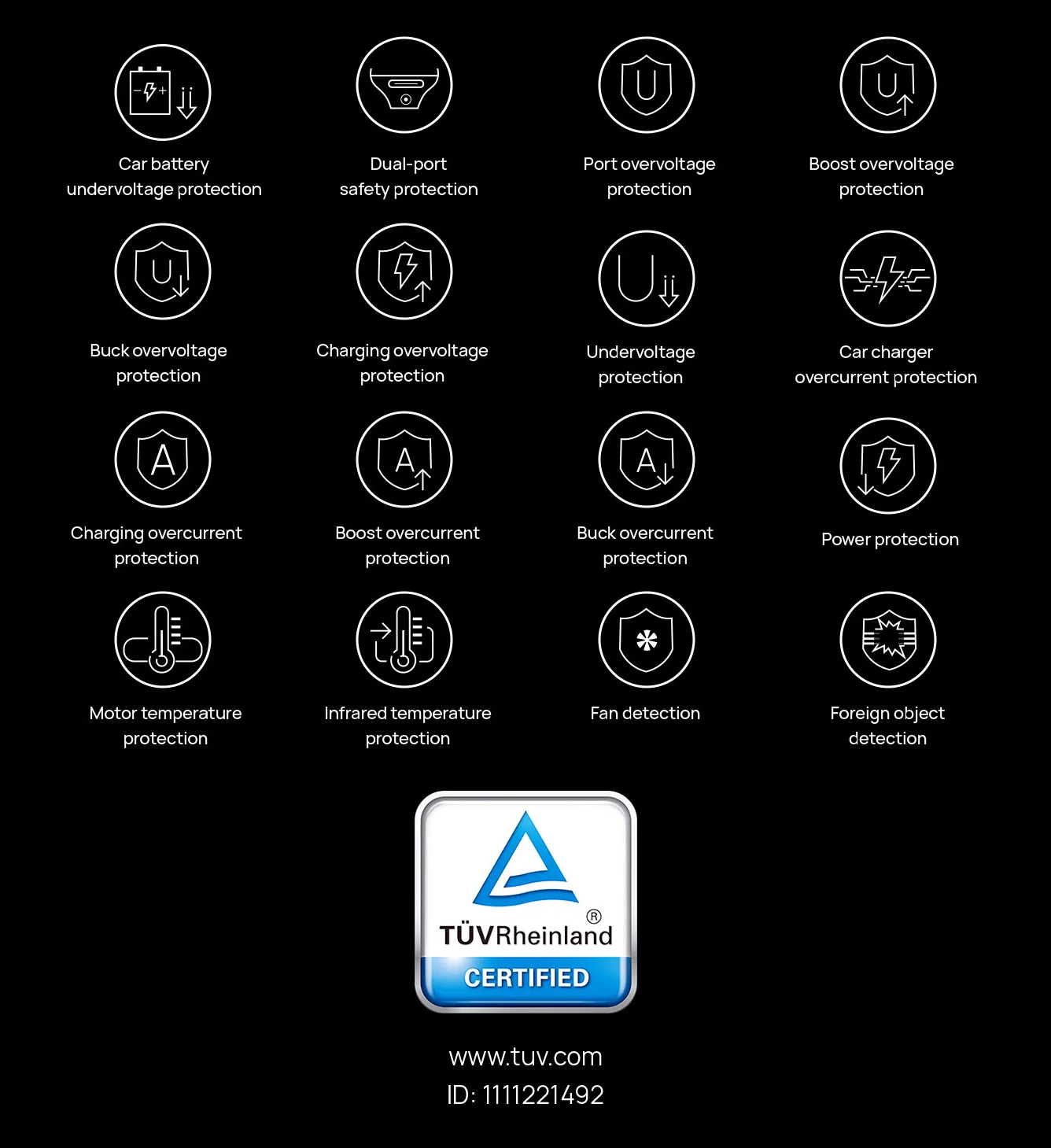 TÜV Rheinland-certified safe fast charging guarantees 16 layers of protection as you charge your phone.