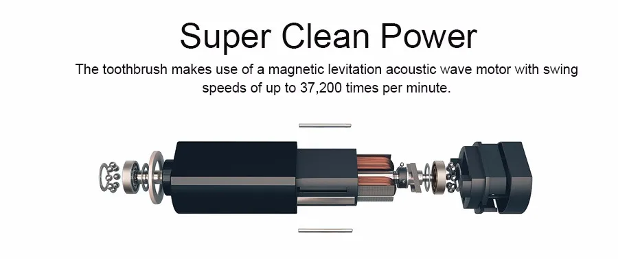 The toothbrush makes use of a magentic levitation acoustic wave motor with swing