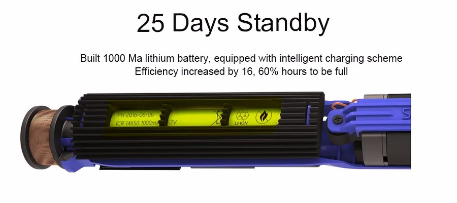 Built 1000ma lithium battery ,equipped with intelligent charging scheme efficiency increased by 16 , 60% hours to be full