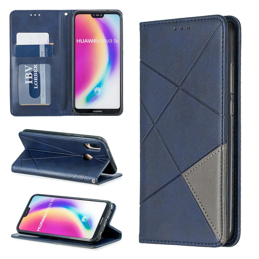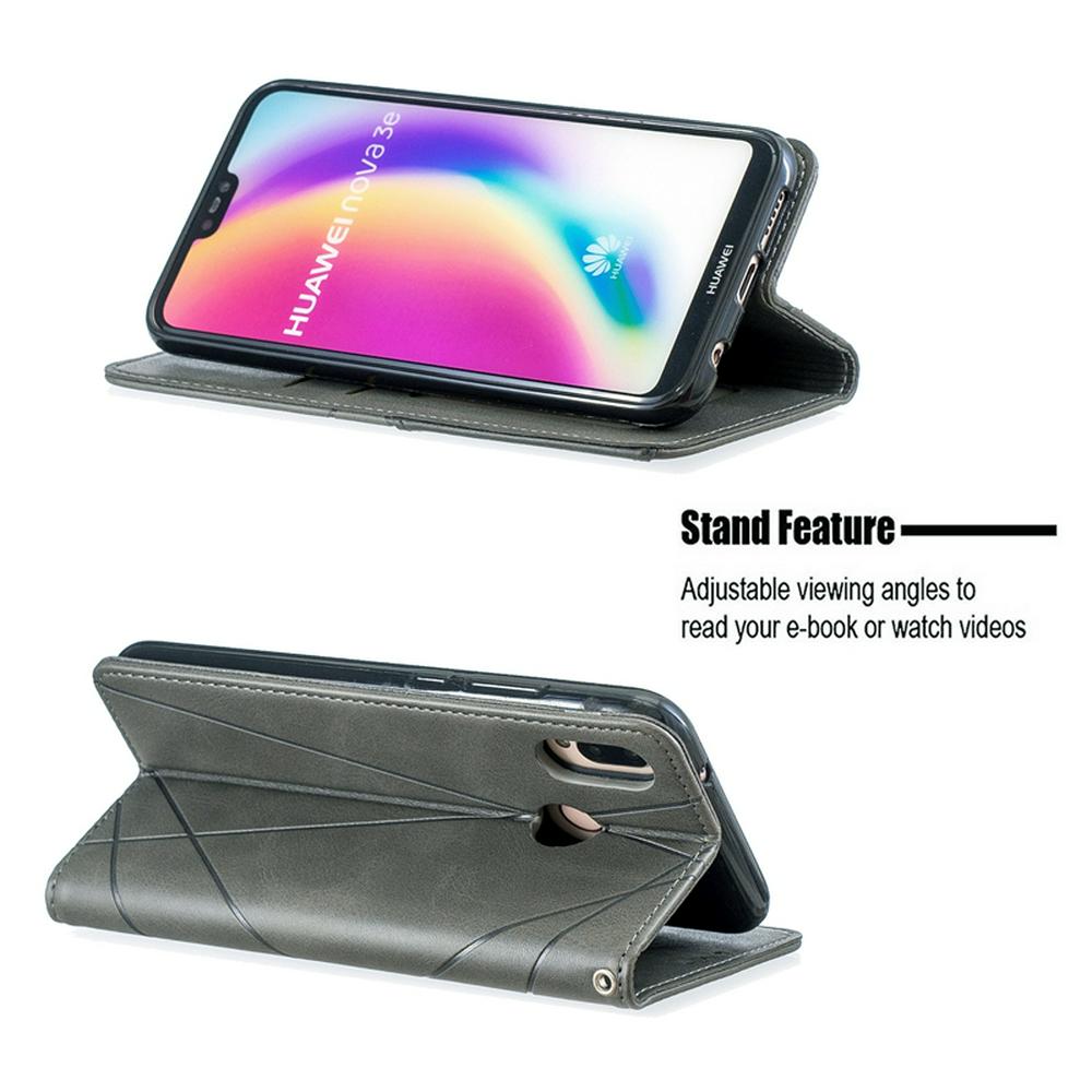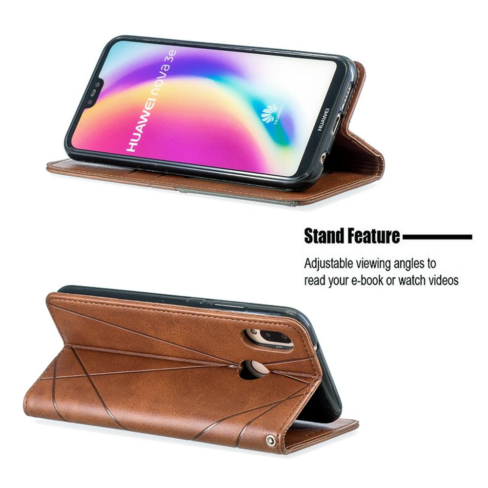 HUAWEI P20 LITE PU+TPU Clamshell Phone Case Geometric Mosaic Pattern Retro Simple Solid Color Style Leather Phone Case for HUAWEI P20 LITE Phone Case