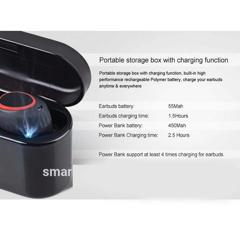 Portable charging:Equipped with mini and portable 500mAh battery charging box, which can standby 360 hours.Each earbuds build in 50mAh which can fully charging within hours.Never worry about low battery when you are out all day.