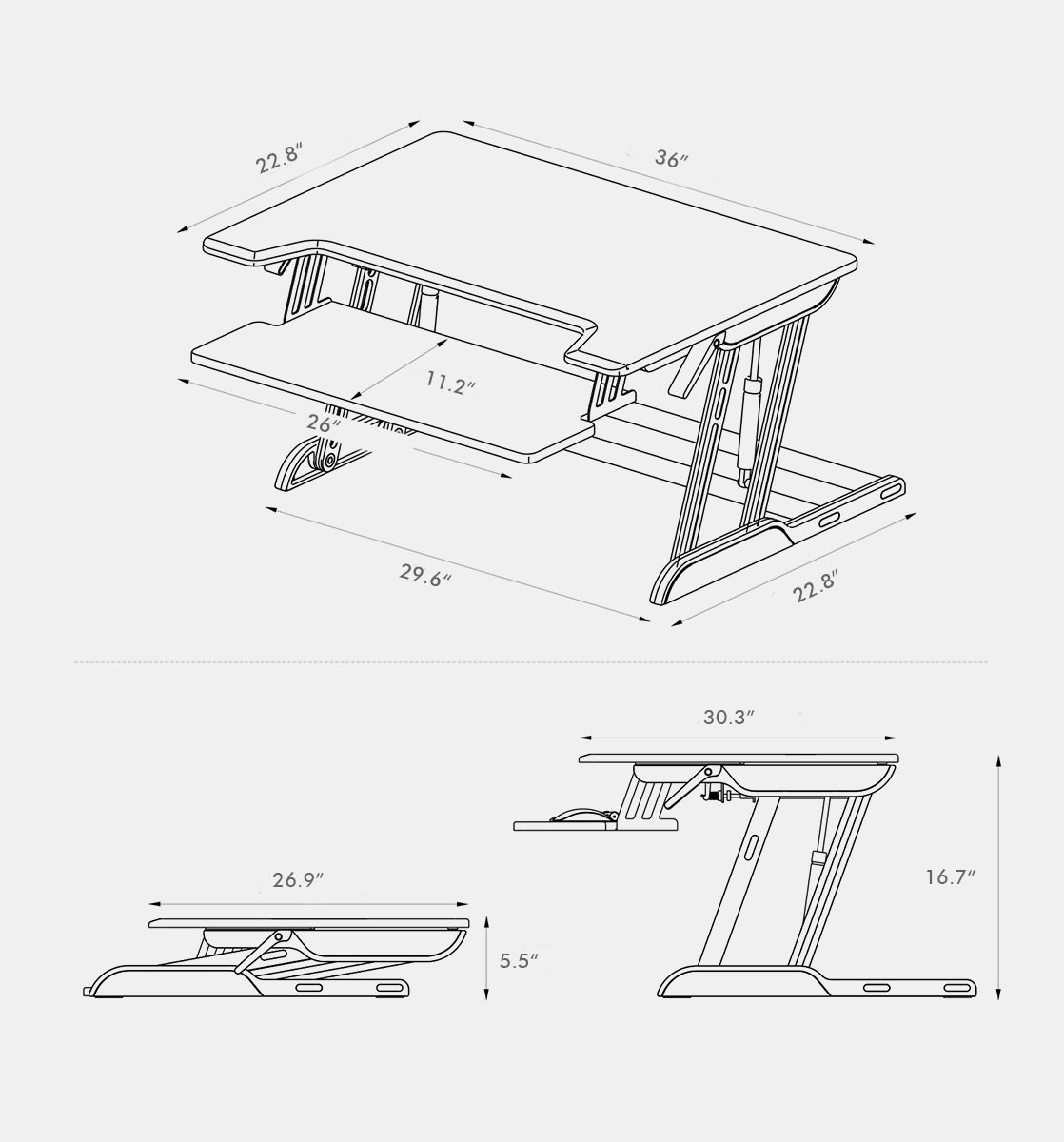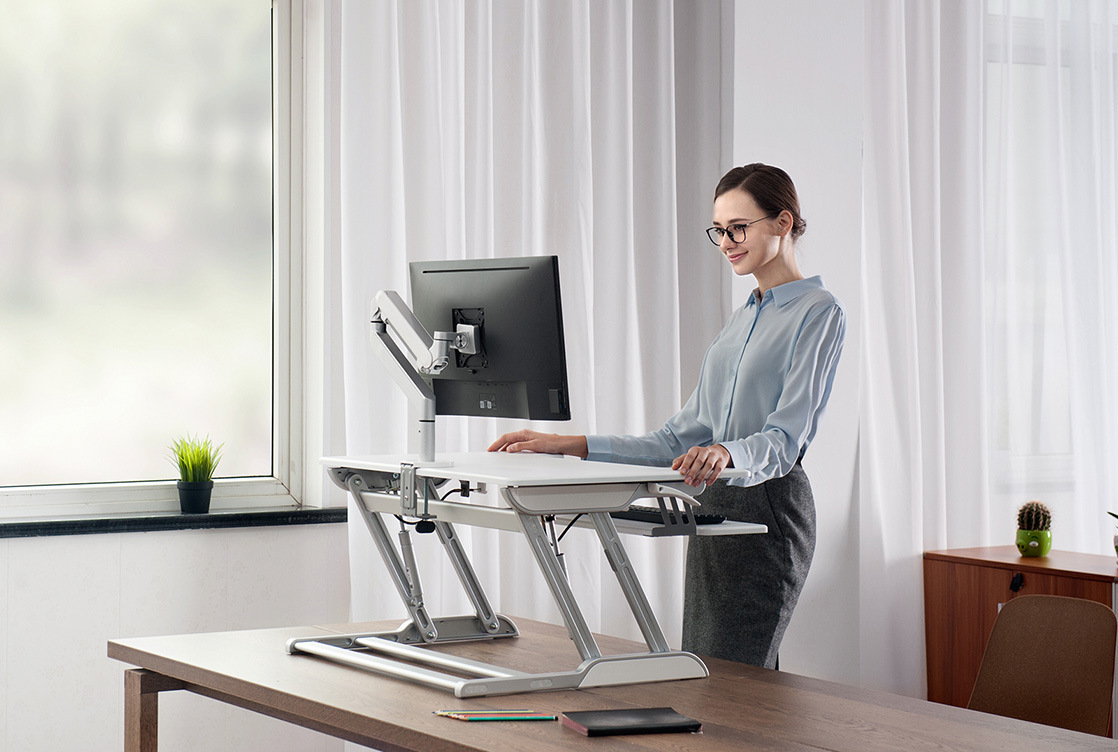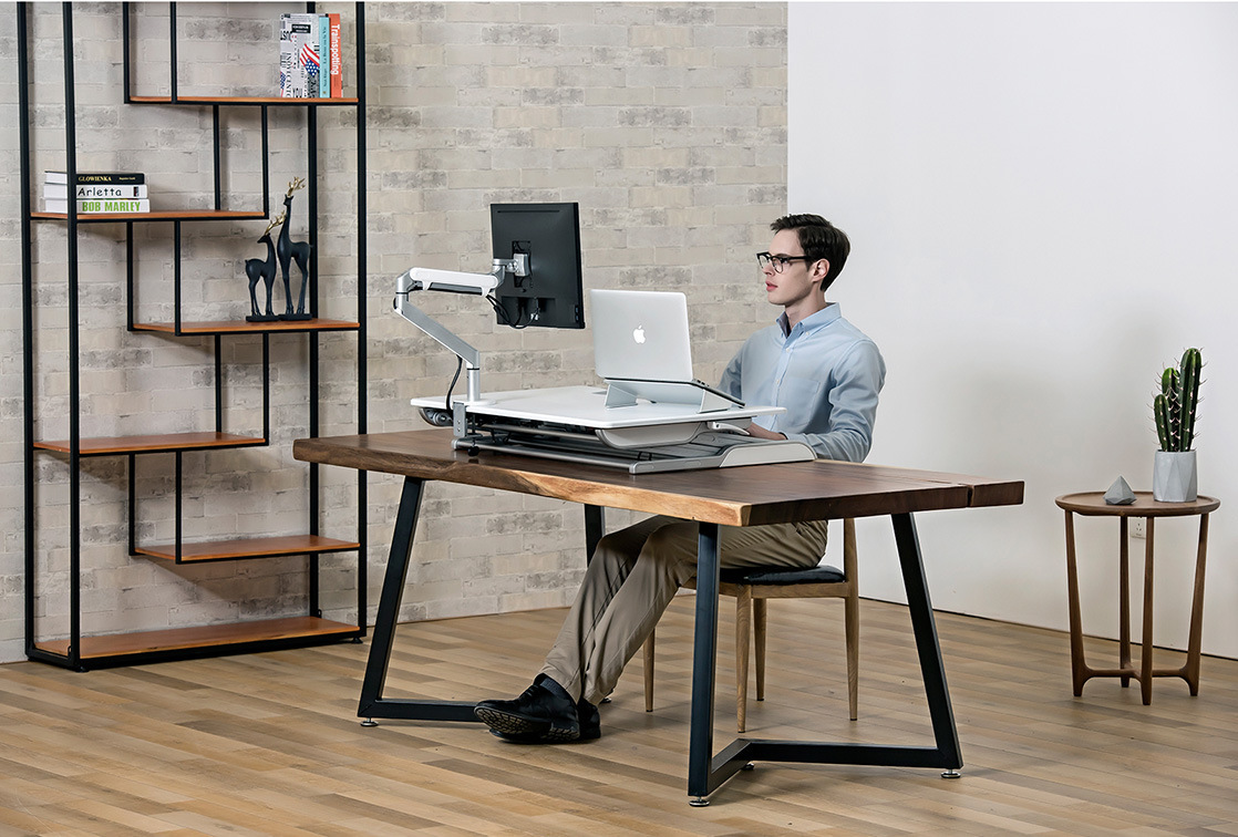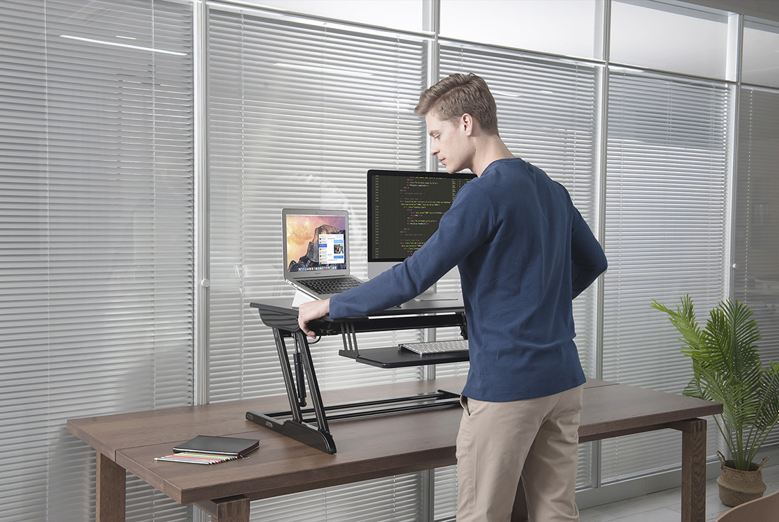Height Adjustable Fully Assembled Sit/Stand Desk With Operation Handle