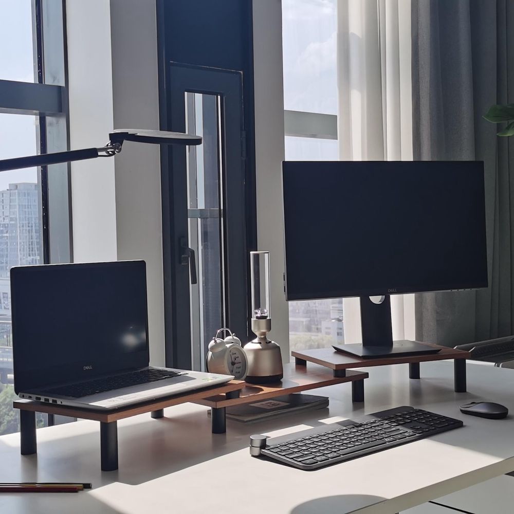This ID-42 solid wood stand raises your monitor to a more comfortable ergonomic height which reduces the strain on your neck and shoulders and helps you to keep a standard sitting posture for long term work
