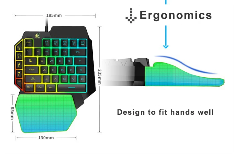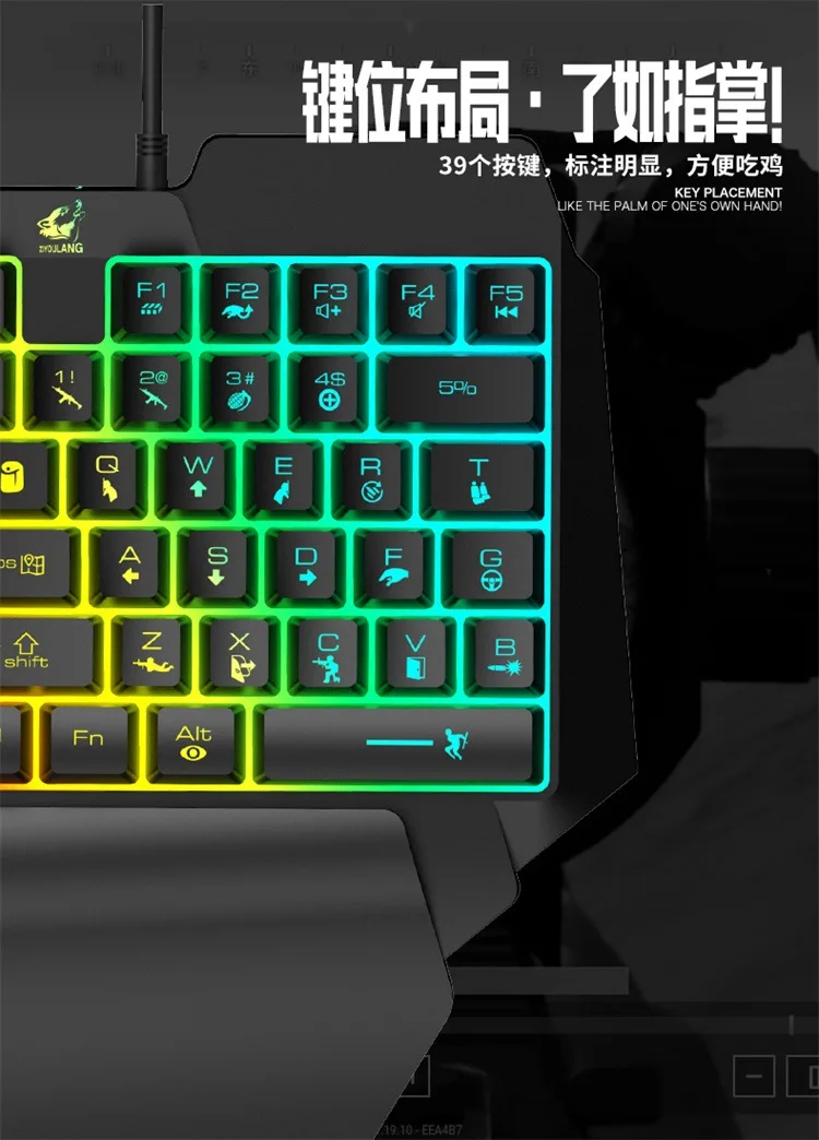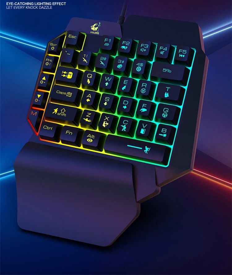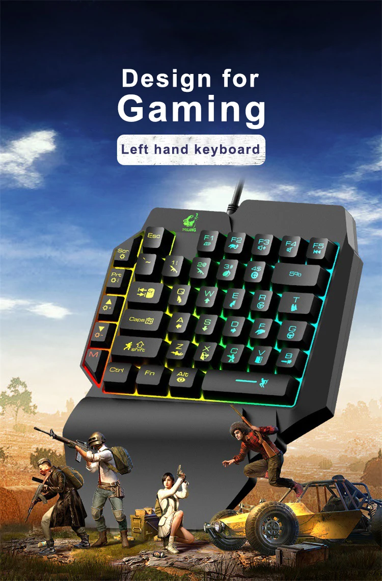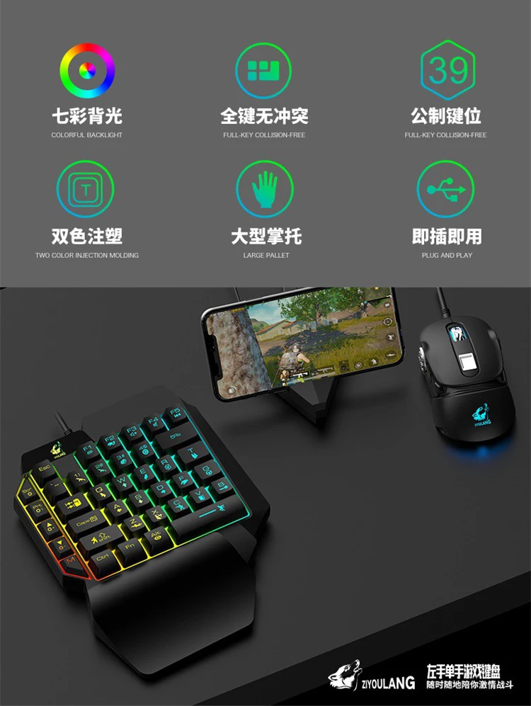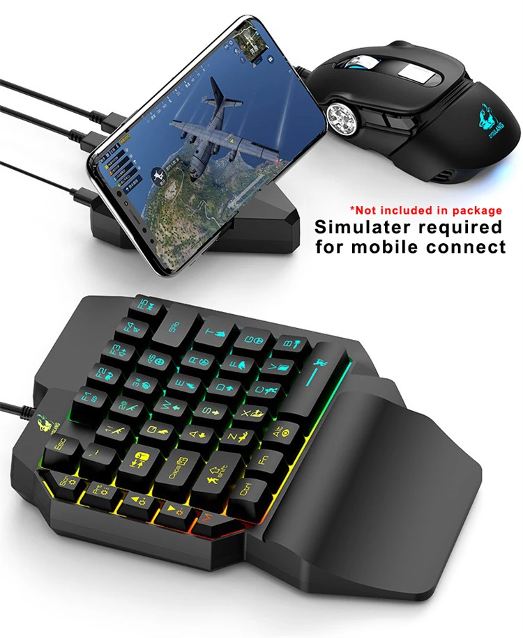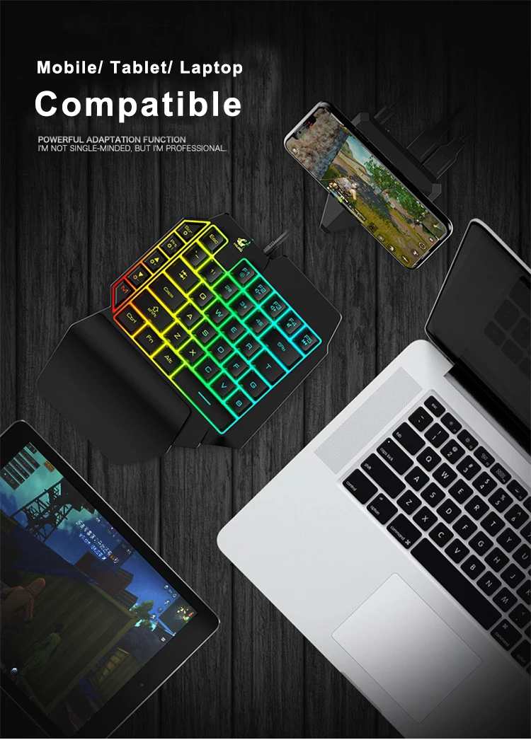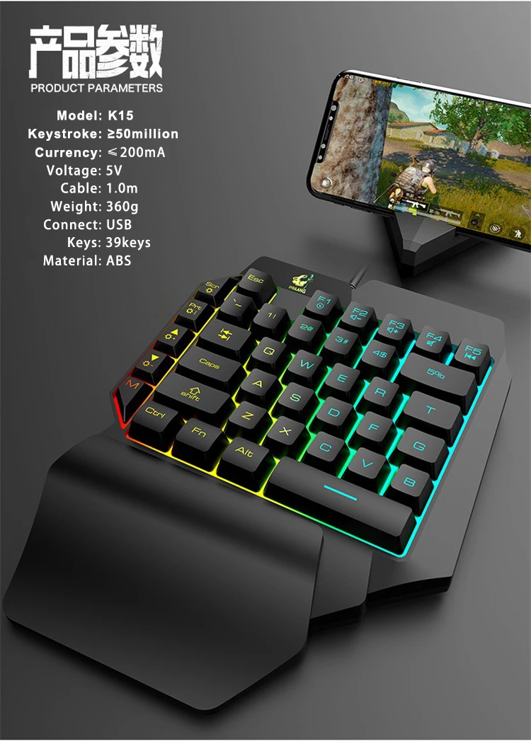 K15 L39 Keys Colorful Backlit Single Hand Mechanical Feel Left Hand Game Keyboard for Mobile Tablet Laptop PUBG Game