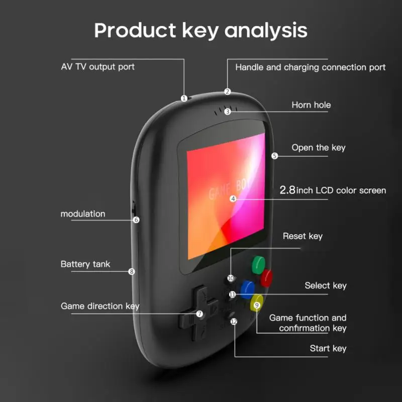 【Enjoy Funny Games Anytime & Anywhere】-- Compact and lightweight handheld game console with simple and never outdated design. Pocket-sized body make it more convenient to carry it out, it is perfect for playing on the go. You can enjoy the fun childhood fun in airplanes, camps, travel or on the way to work, gameboy consoles is the best choice for relaxing mood.