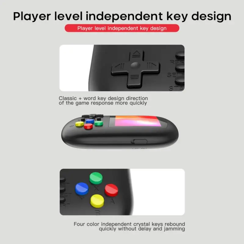 【Rechargeable Big Capacity Battery】-- Our mini retro handheld game player built-in 1200mAh large capacity rechargeable lithium battery. Come with a USB cable plug & play, the game can play for up to 6 hours each time it is fully charged. When you are on a business trip, traveling, camping, you don't have to worry about running out of power.