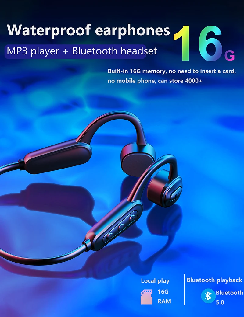 16G memory MP3 music player + wireless bluetooth bone conduction headphones