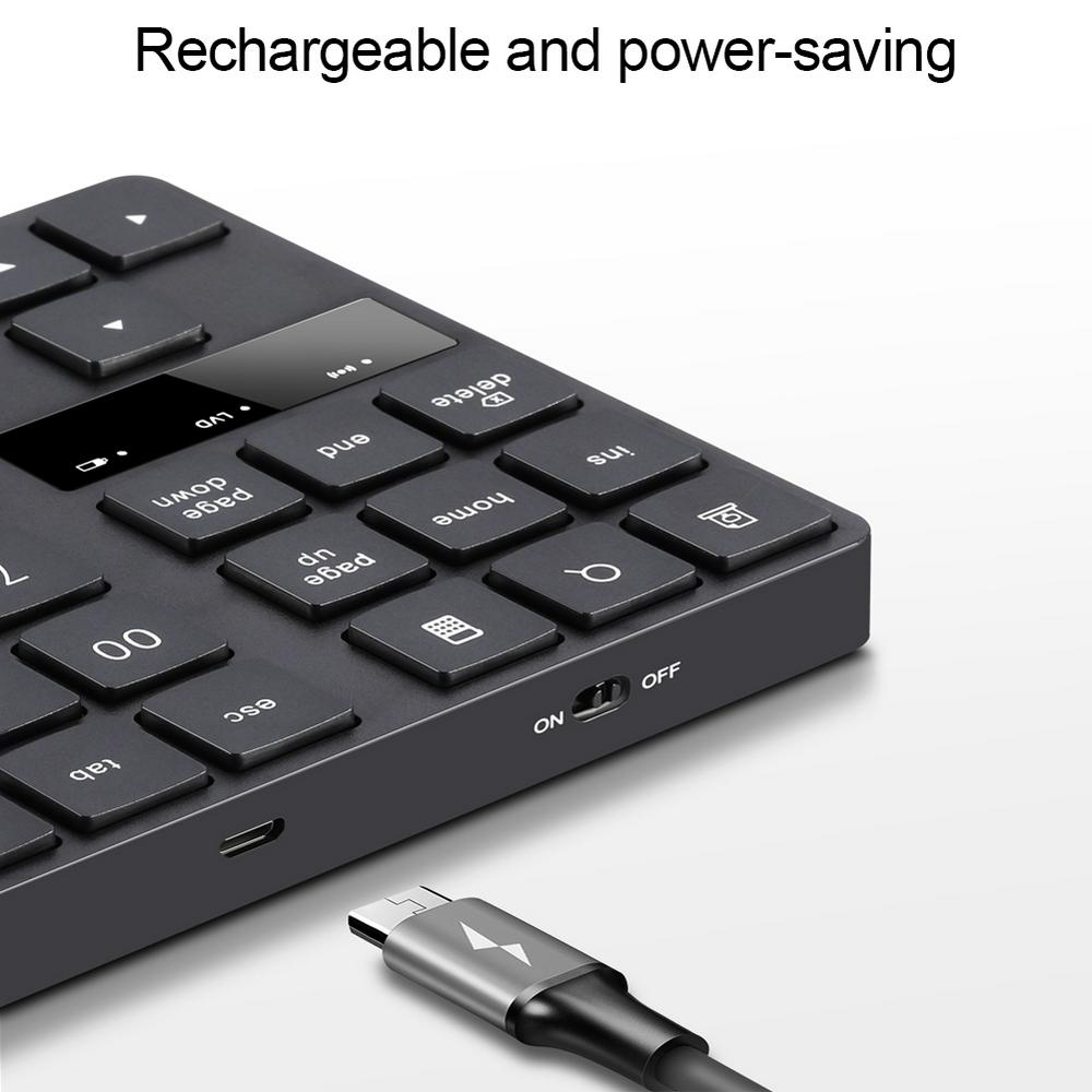 3. Rechargeable and power-saving: the numeric keypad can be charged, which can avoid wasting batteries and is environmental protective. If you do not use the numeric keypad for more than 20 minutes, the numeric keypad will go to sleep. If you press any key, the numeric keypad will work again.