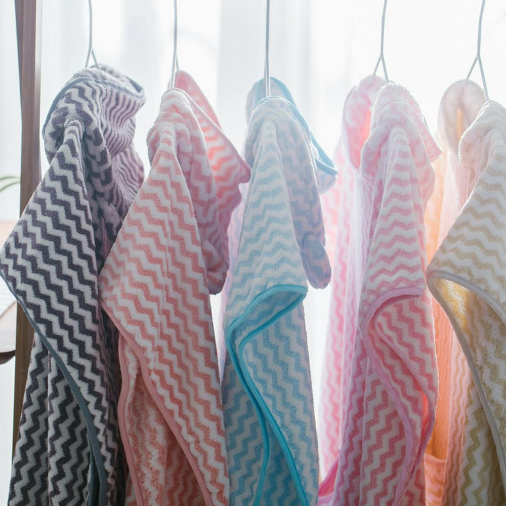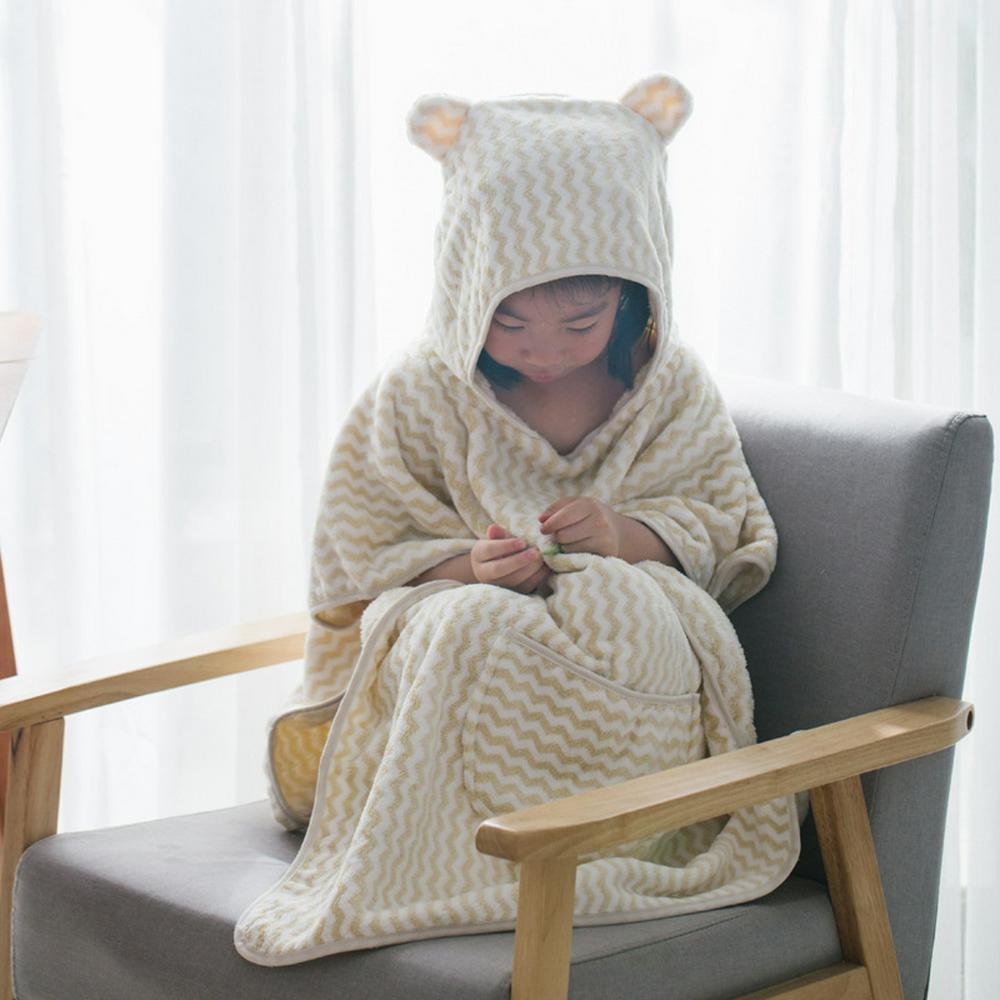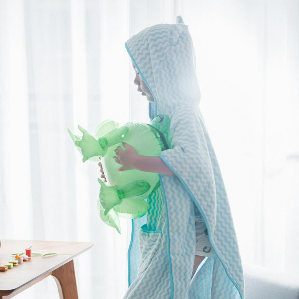 Kid's Hooded Microfiber Bathrobe Cute Absorbent Robe with Water Wave Pattern