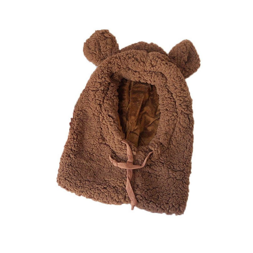Kid's Plush Animal Hat Cute Warm Hood Cap with Drawstring