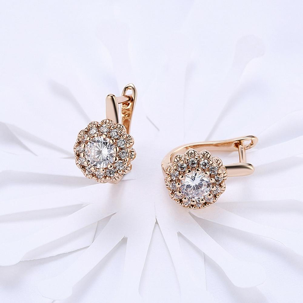 KZCE151-E K Gold Zircon Flower-Shaped Diamond Romantic Champagne Gold Earrings Ear Clips Women Jewelry
