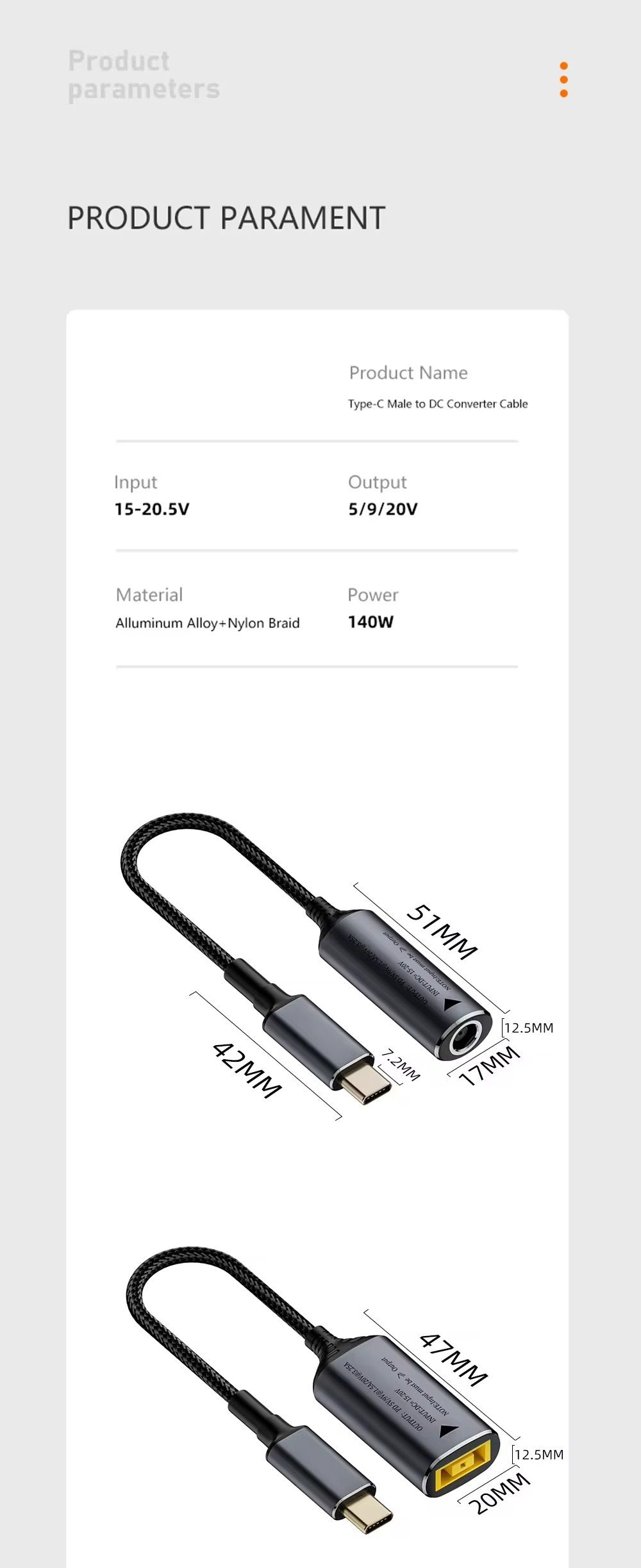 Use it to charge your Type-C devices through a standard DC plug/adapter, suitable for all kinds of small chargers, smartphones, laptops and moreI