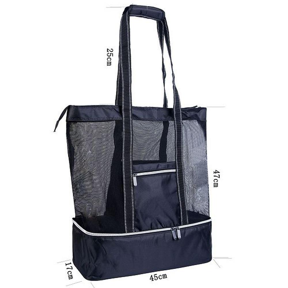 Large Capacity Multi-Function Lightweight Zipper Long Handle Beach Mesh Bag Cooler Tote with Insulated Food Grade Compartment for Outdoor Picnic Camping Traveling