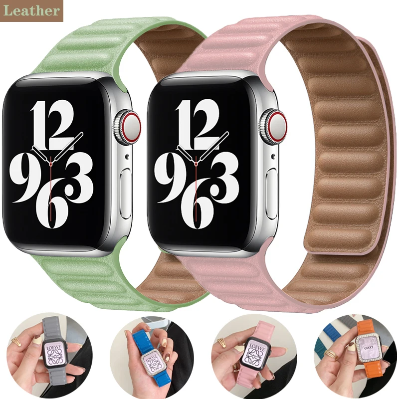 Leather Link loop For Apple watch band 45mm 44mm 42mm 41mm 40mm 38mm watchabnd original Magnetic bracelet iWatch seires 4 3 5 6 SE strap