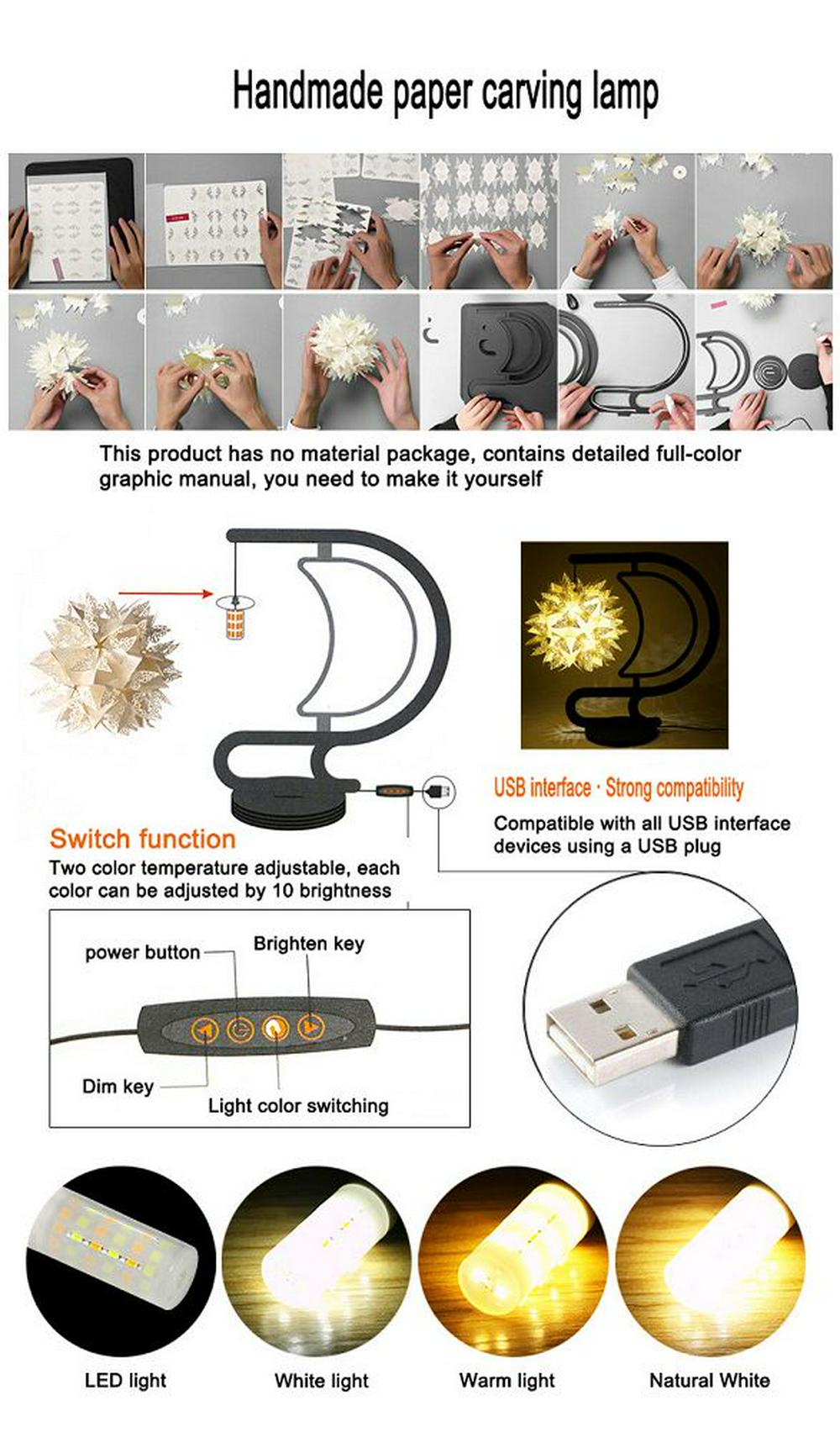 LED Creative Paper Carving Night Light Handmade 3D Paper Crafts Home Decoration