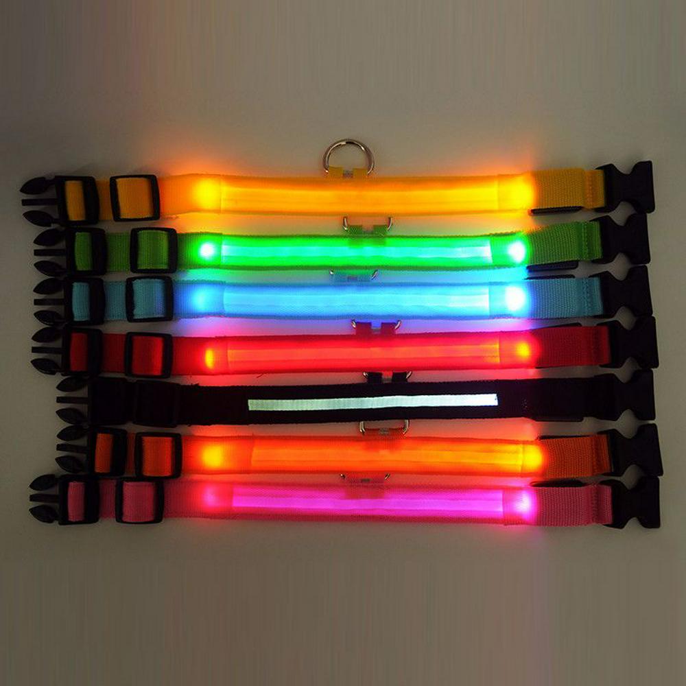 LED Flashing Dark Glow Nylon Leash Pet Dog Collar Night Safety Luminous Fluorescent Collar