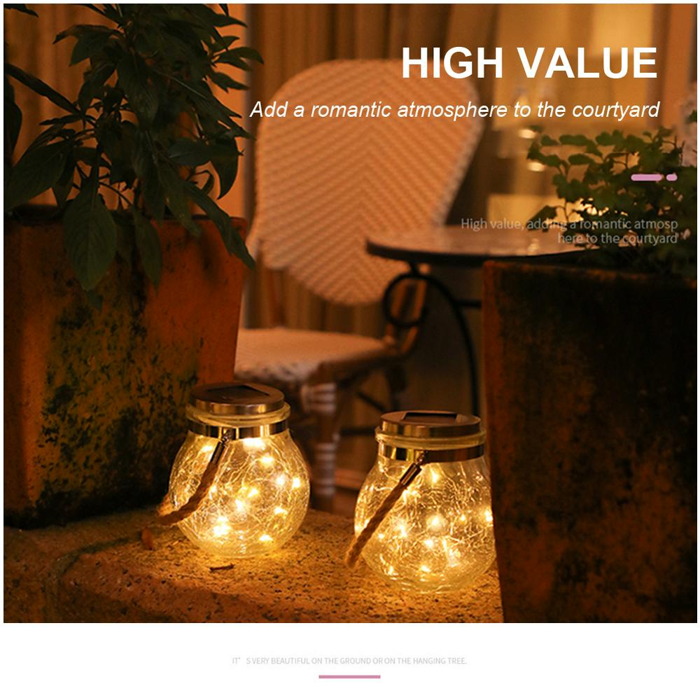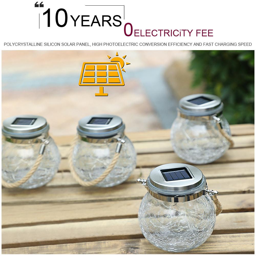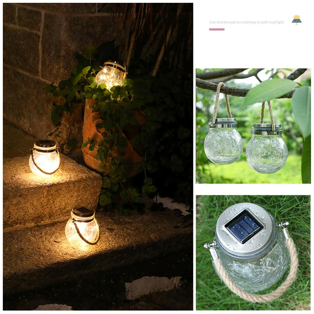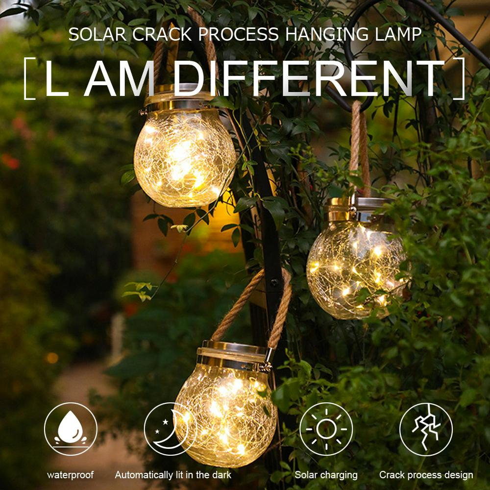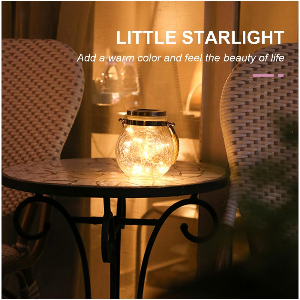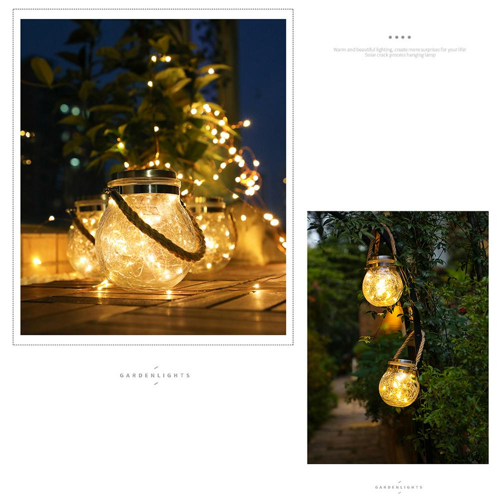 Led Solar Power Crack Ball Glass Jar Lights Outdoor Garden Tree Star Copper Line Lamp Candy Can
