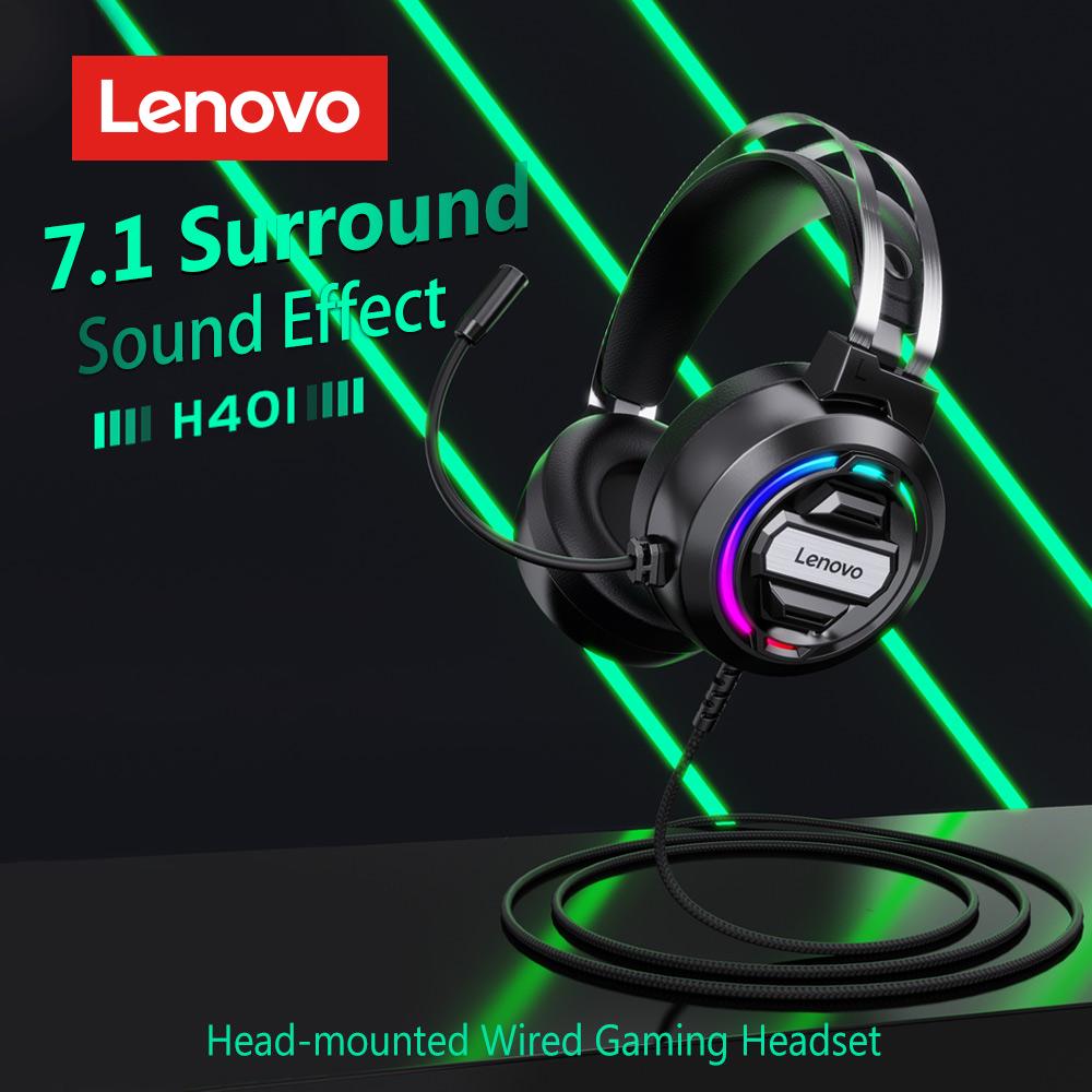 Lenovo Gaming Headset over-ear Wired Game Headphones Surround Sound USB Deep bass Stereo with Microphone for PC Laptop Gamer