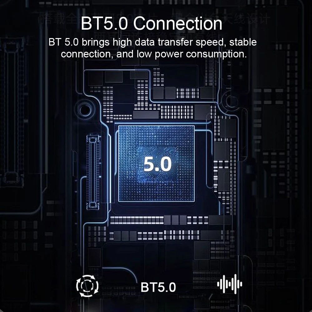 BT 5.0 brings high data transfer speed, stable connection, and low power consumption.