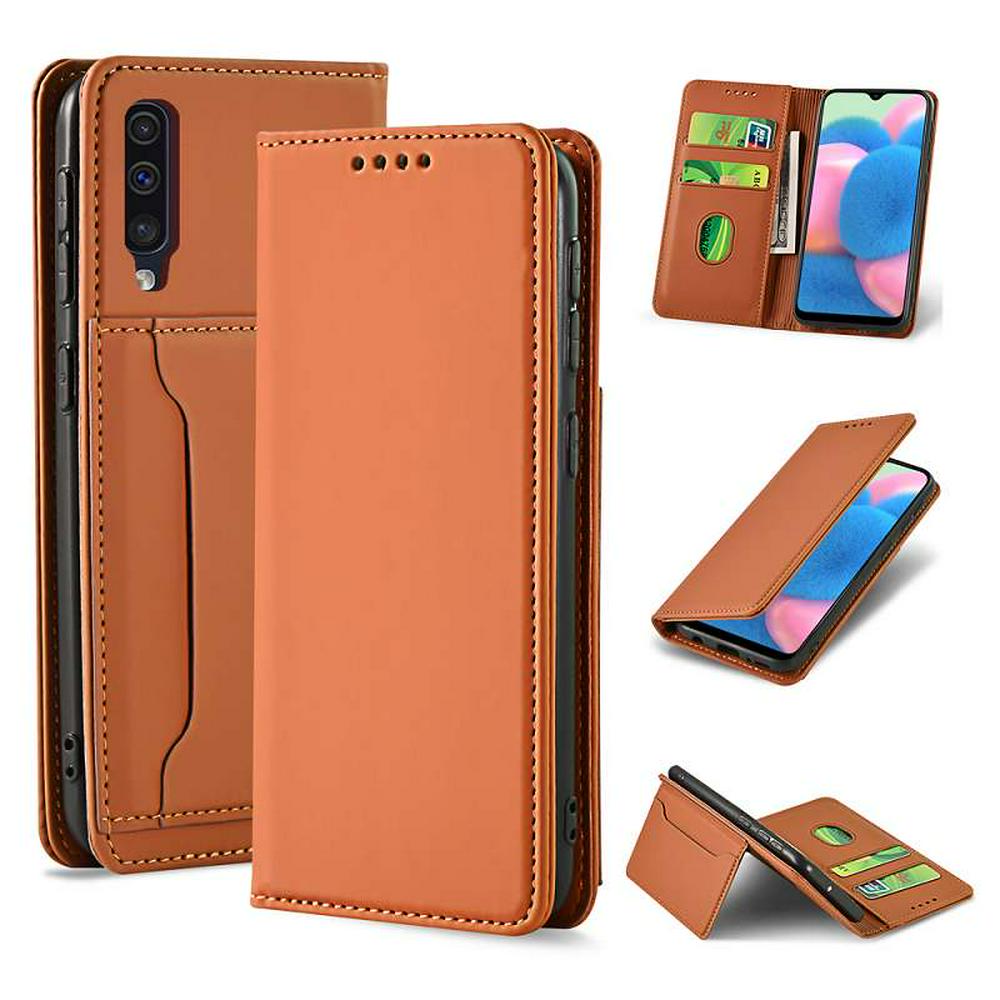 Liquid Skin Feel Strong Magnetic Shockproof Side Flip PU Leather + Soft TPU with Multifunctional Card Slots and Stand Case for Samsung Galaxy A30s