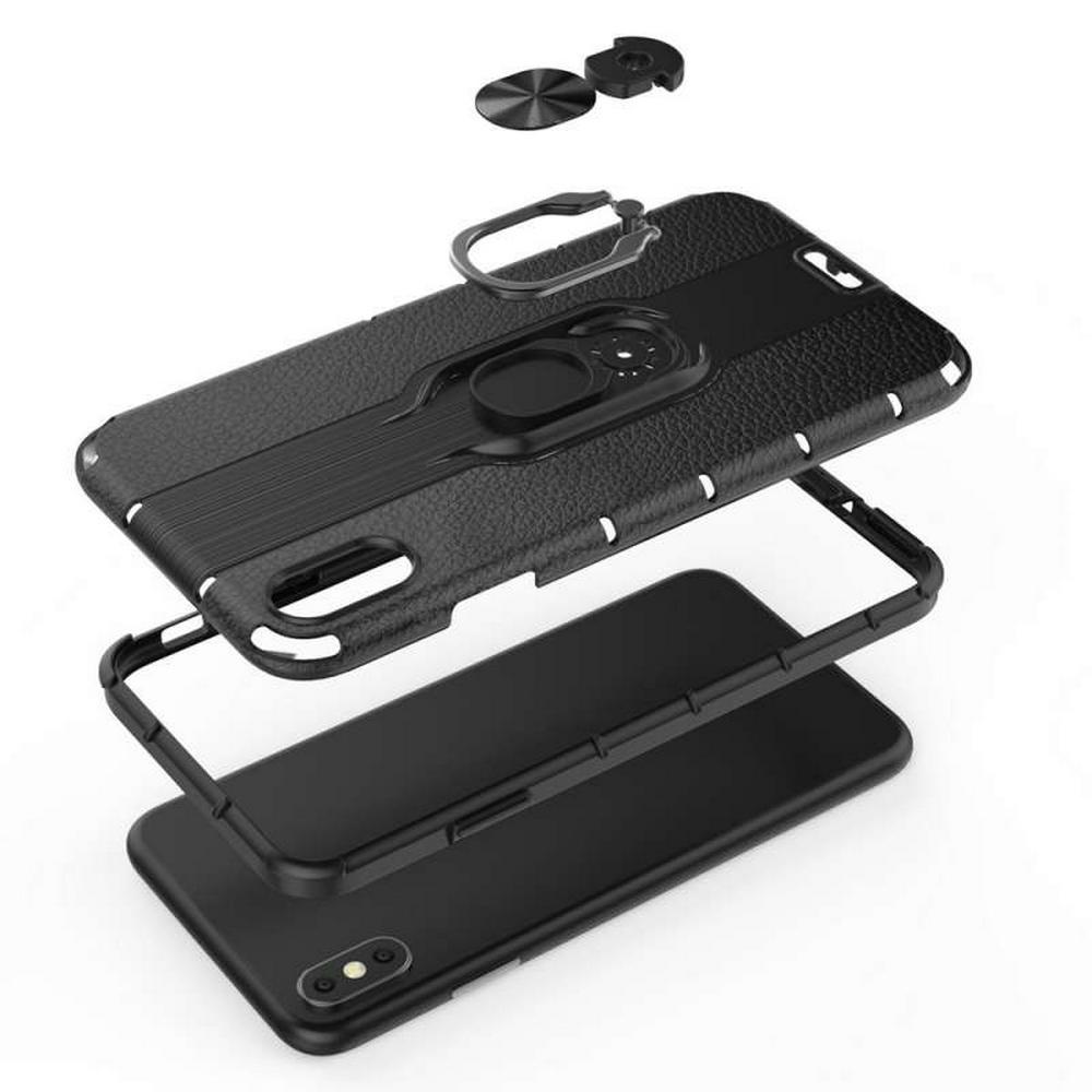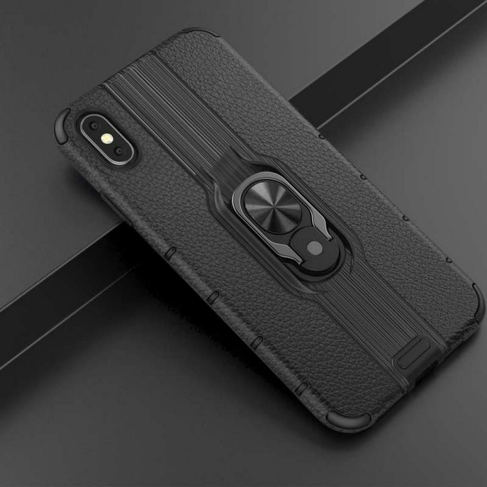 Litchi Texture PC + TPU Combination Case with Magnetic Ring Holder For iPhone Xs Max 6.5