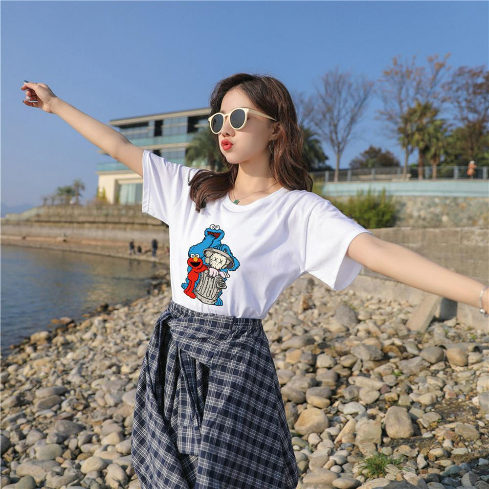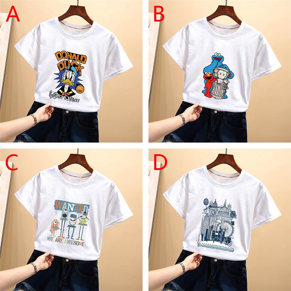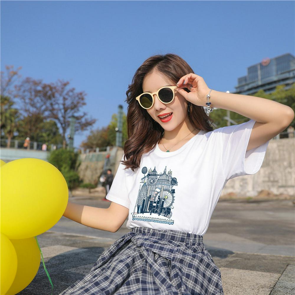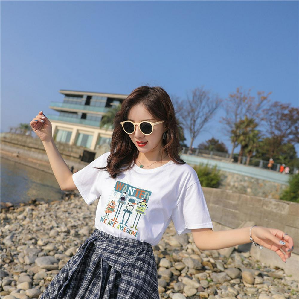 M-3XL Size Summer Fashion Casual Print Pattern Students Female Short Sleeve O-Neck Loose T-Shirt Top