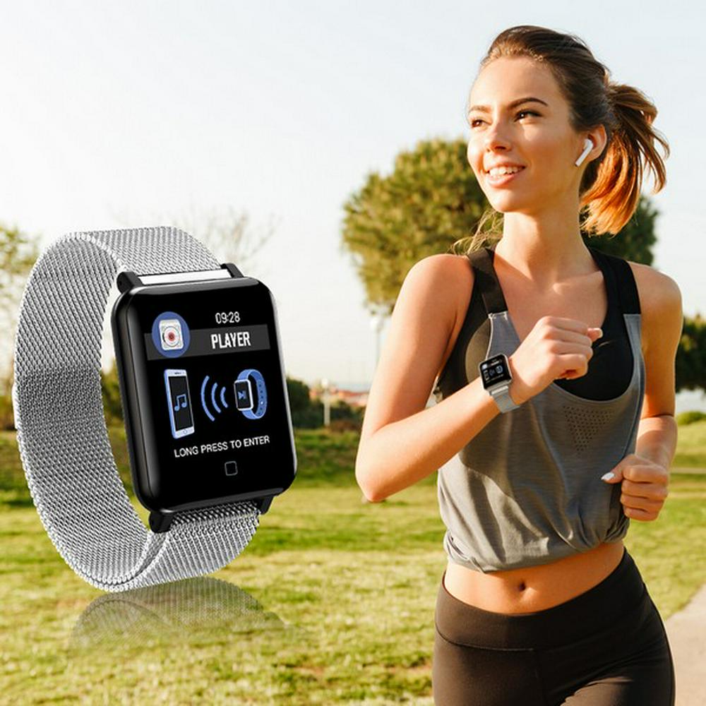 M19 Smart Clock Heart Rate Blood Pressure Oxygen Monitor OLED Screen Bluetooth Sport Smartwatch Stainless Steel Band - Silver