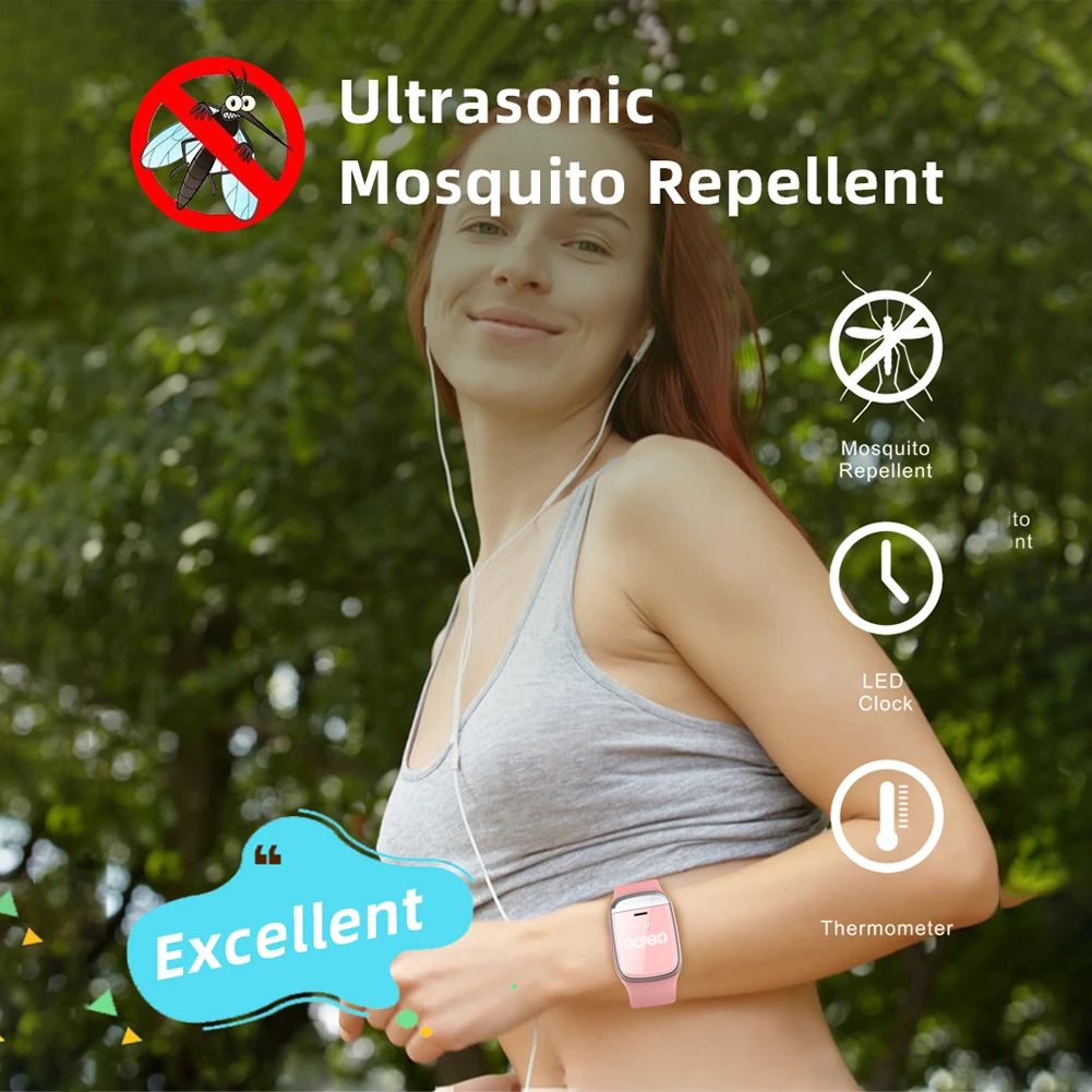 M20 Electronic Mosquito Repeller Ultrasonic Mosquito Repellent Bracelet Watch Thermometer