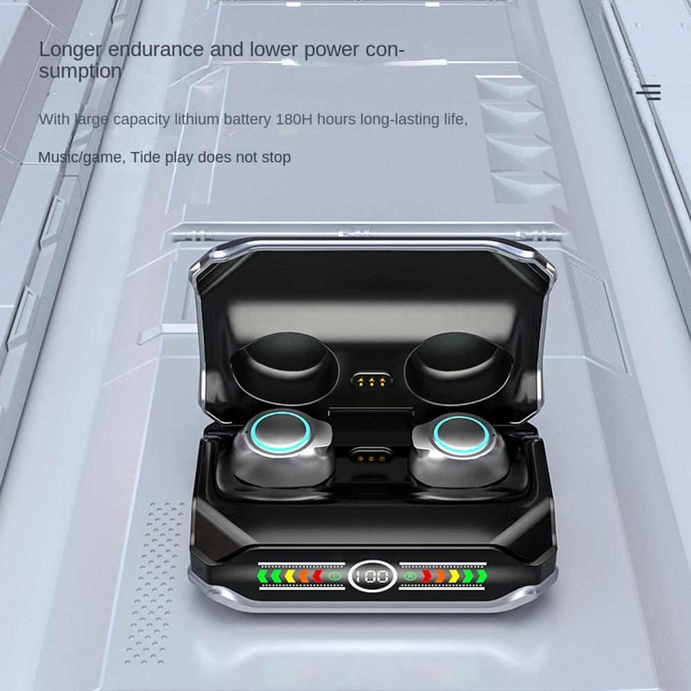 1. RGB lighting effect and power display: The Bluetooth-compatible headset has built-in cool RGB lighting effects, LED power display function and fingerprint button. Touch the fingerprint button to easily read the battery level of the charging box, without worrying about the power failure of the charging box.