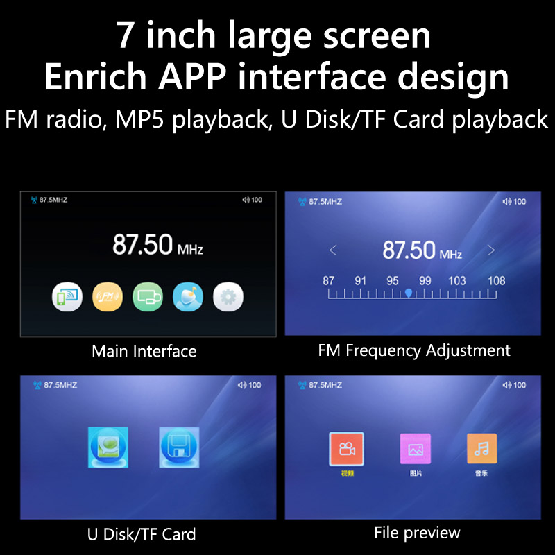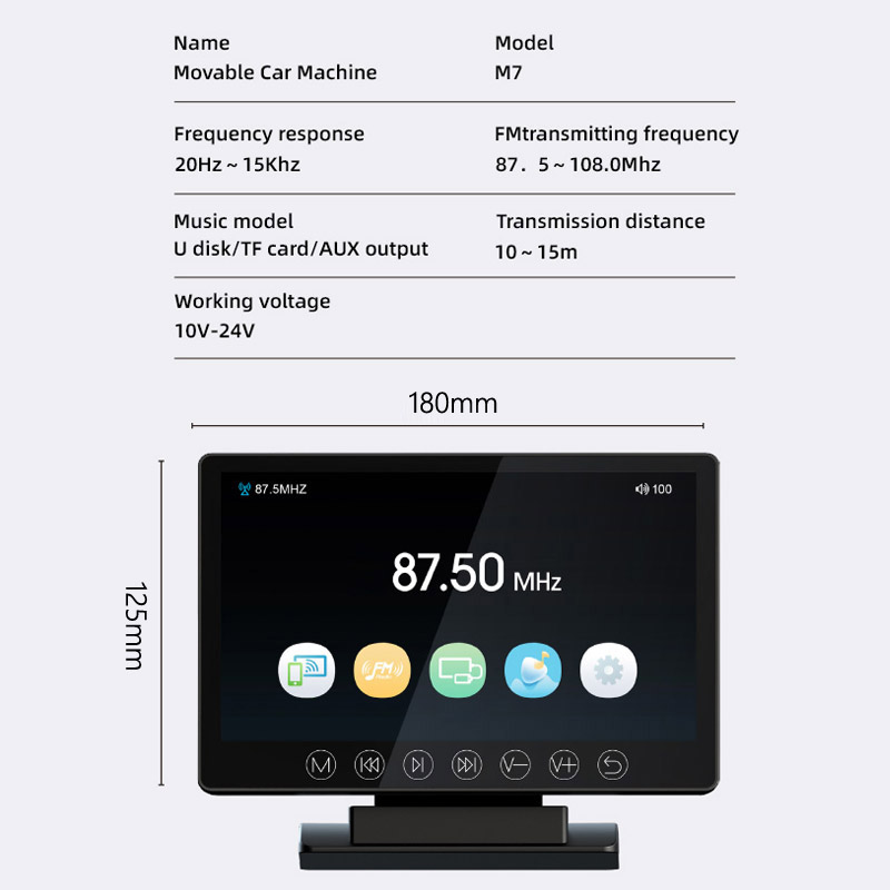M7 FM Transmitter Car MP5 Player 1080P HD Video Wifi Wireless 7 Inch Car Mobile Phone Screen Projection Display AUX Player