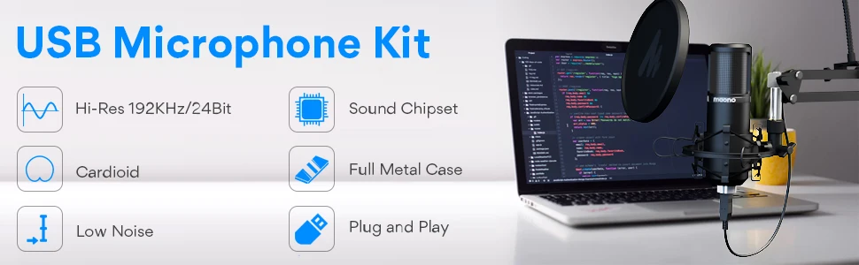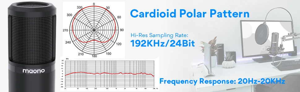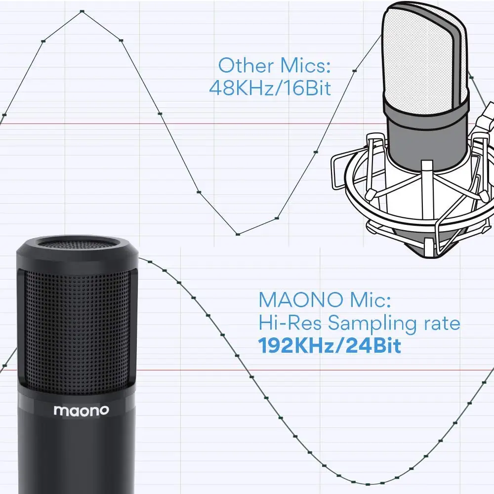 MAONO PM420 Podcast Microphone 192KHZ/24BIT USB Condenser Cardioid PC Mic with Professional Sound Chipset for Gaming Streaming