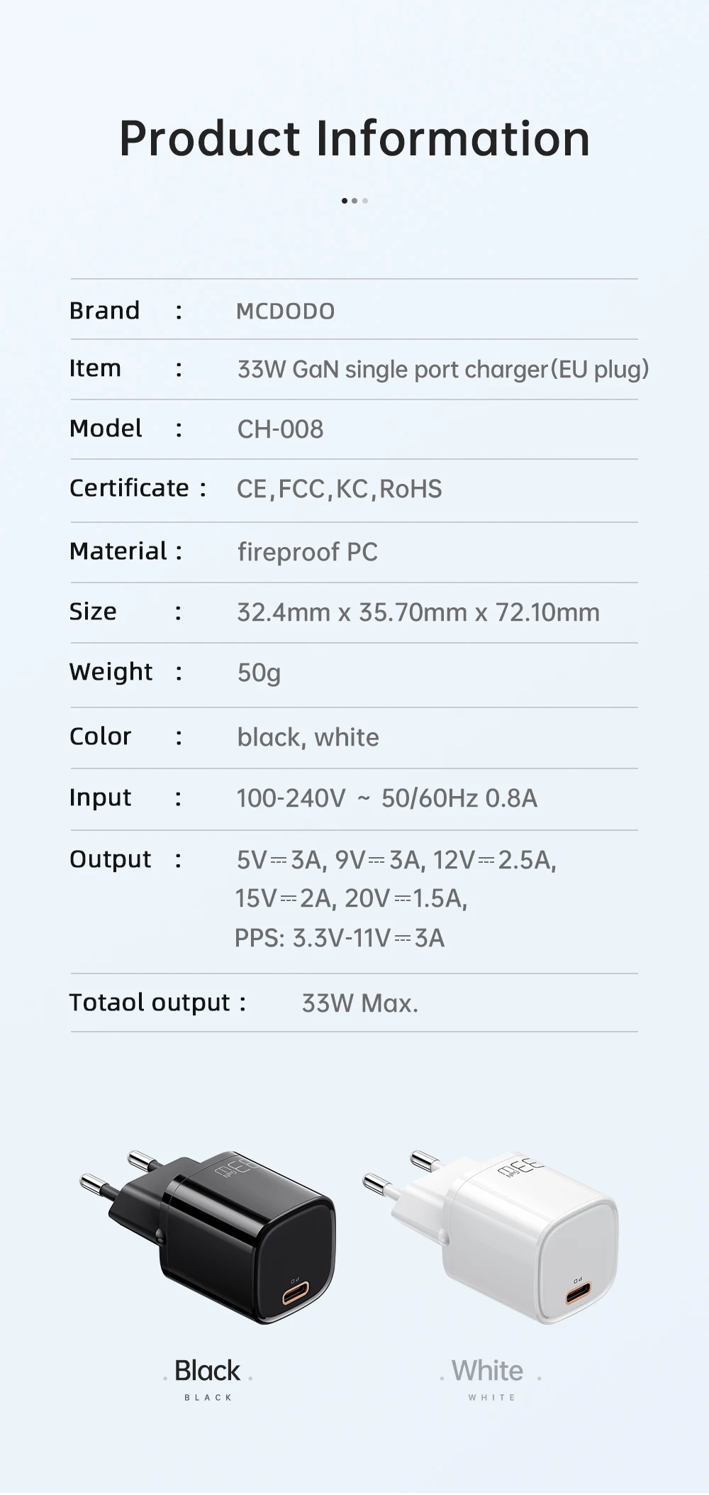 Model Number : 33W Type C PD Charger