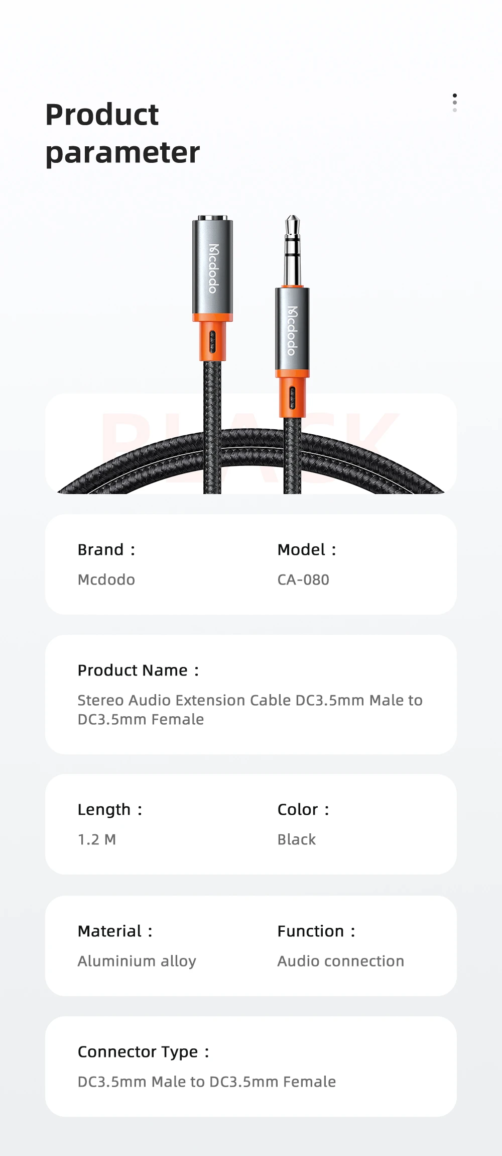 Mcdodo 3.5mm Male to 3.5mm Female Headphones Jack Aux Cable Adapter For iPhone Huawei iPad Tablet Xiaomi Samsung Smartphones TOG