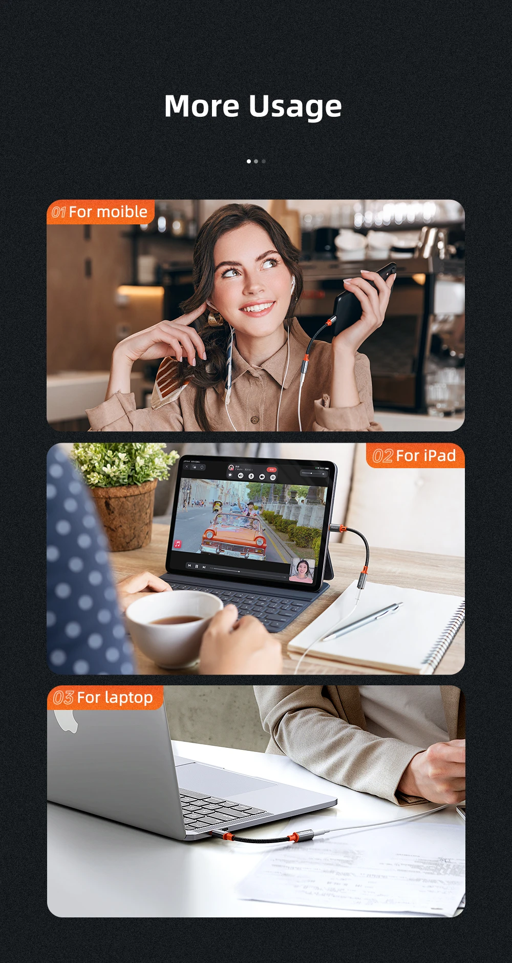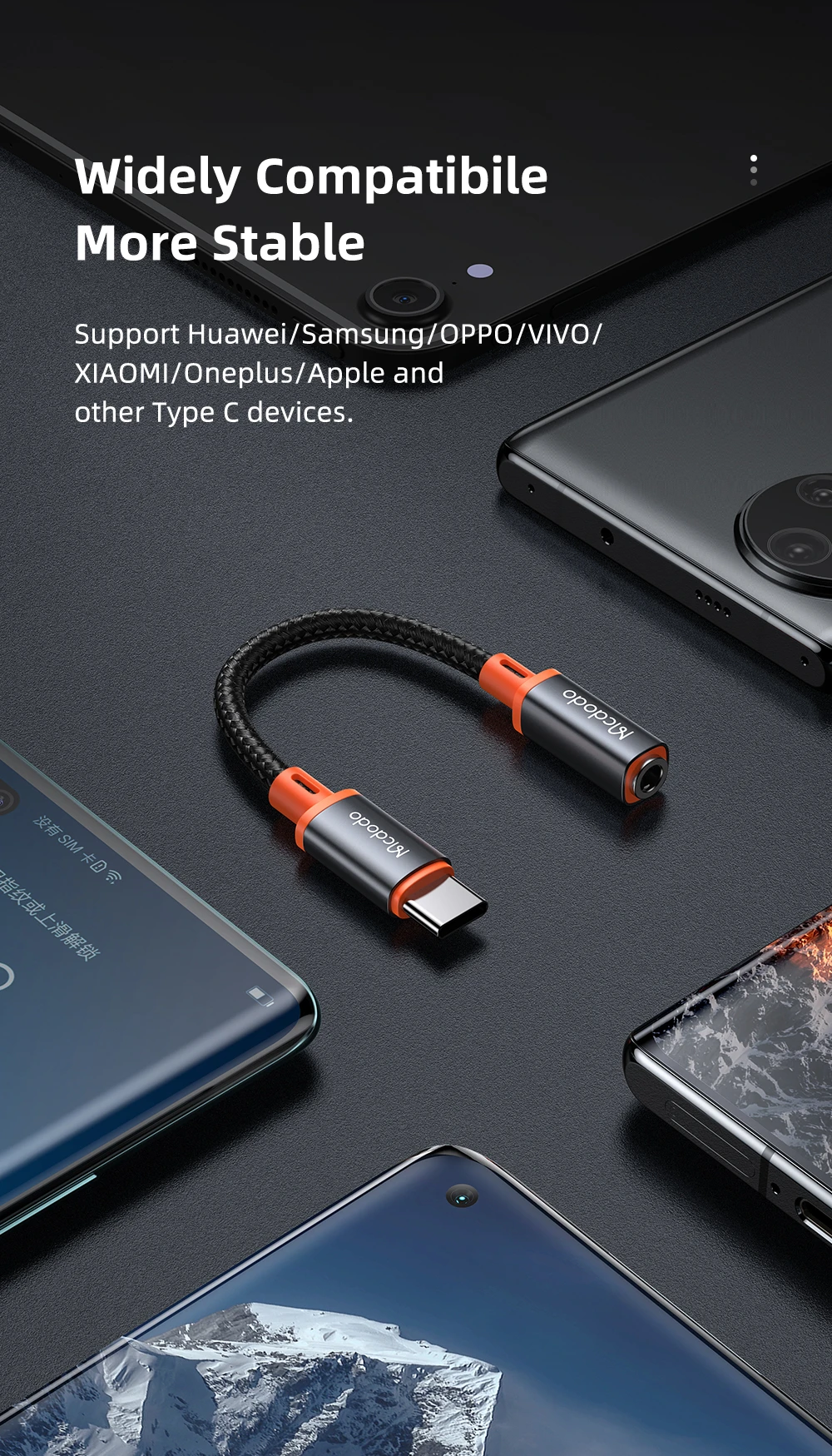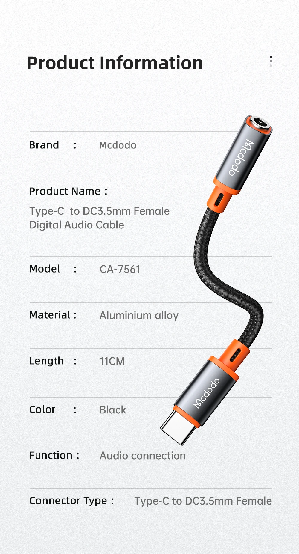 Brand Name : MCDODO Connector A : TYPE-C Certification : CE Certification : FCC Origin : CN(Origin) Type : Transfer Sound Amplifier : No Model Number : HIFI Audio Adapter Connector B : 3.5mm Model Number : Type C to DC 3.5mm earphone digital AUX Adapter Output : 3.5mm Jack Input : Type c Color : Black Feature 1 : Type C 3.5 Jack Earphone Adapter For Huawei Mate 20 P30 P20 Pro Feature 2 : USB C to 3.5mm Headphone Adapter For Xiaomi Redmi Note 7 Mi 9 8 9t a3 Feature 3 : Adapter usb type c ,Type C to 3.5mm Jack Connector Feature 4 : USB C to 3.5mm Aux Audio Adapter converters Feature 5 : Type C to 3.5mm connect For Samsung Note 10 S10 Oneplus Feature 6 : Connect to speaker,AUX Ports,iPad Pro,Macbook Features : USB DRIVER,Phone call,wire control,listening to music,