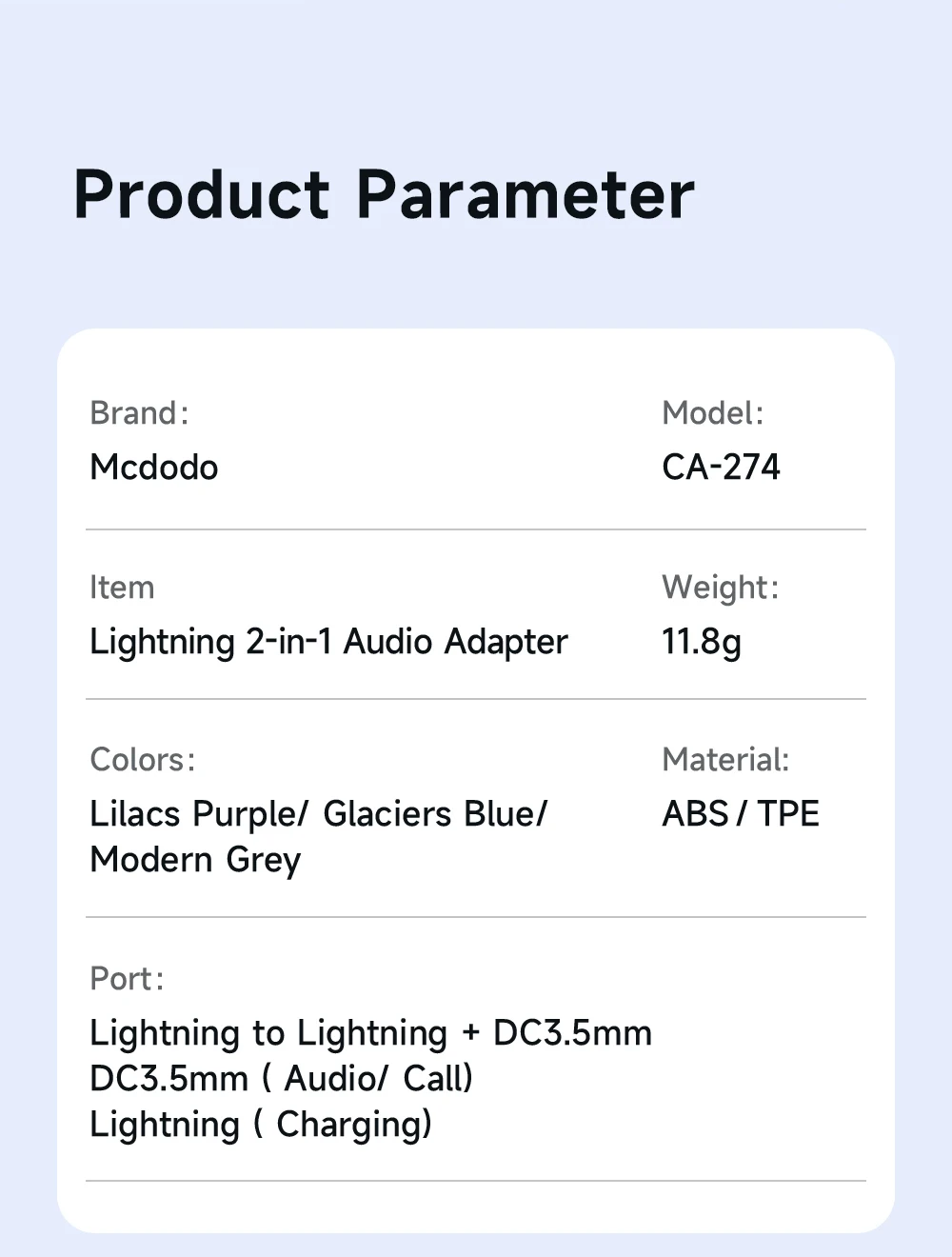 Products : lightning to DC 3.5mm Jack Audio adapter