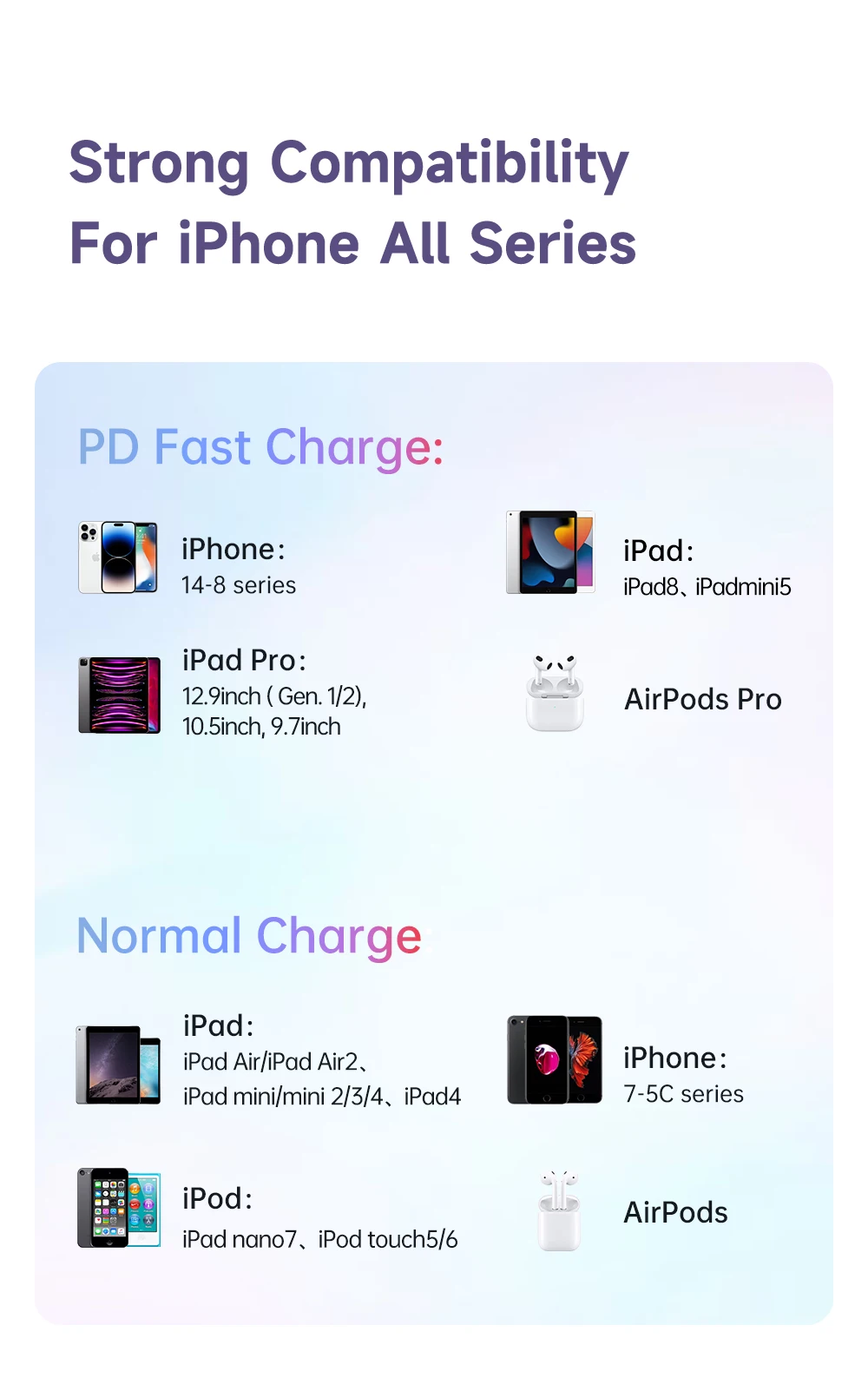 Function C : PD Fast charging Data Cable For iPhone 14 13 12 11 Pro X XR XS Max 8G 8Plus iPad