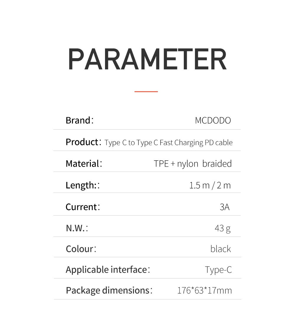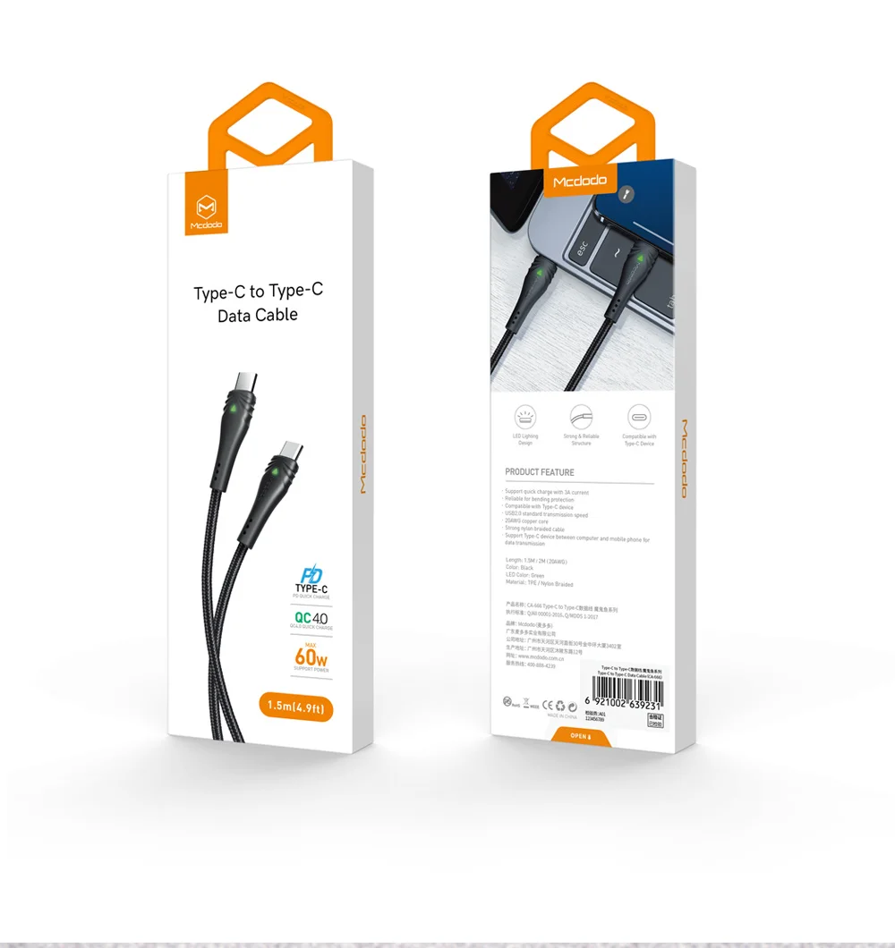 Mcdodo CA-666 60W PD USB Type C To USB C Fast Charge QC4.0 Data Cable Cord for Samsung S9 Huawei Xiaomi Notebook Macbook 2017 Pro