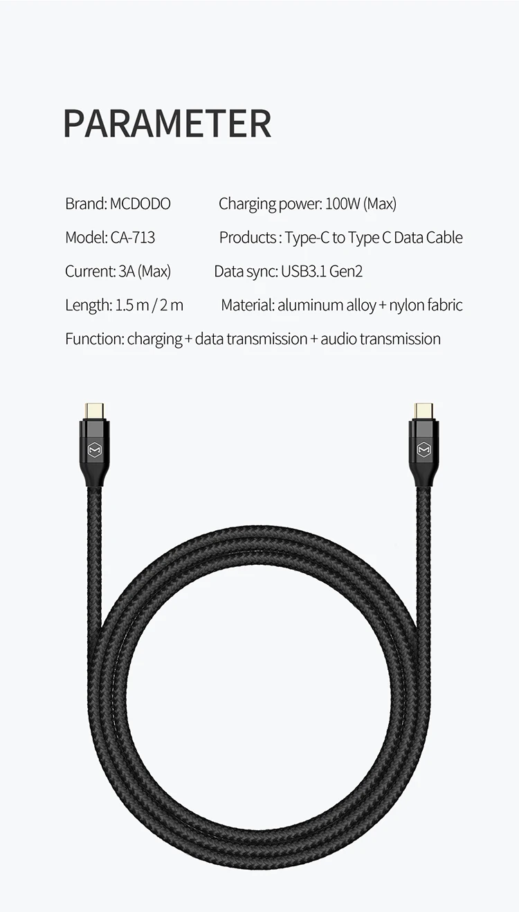 Function: 5Gbps / 10Gbps Data Transmission & Fast Charging Charger USB C Cable
