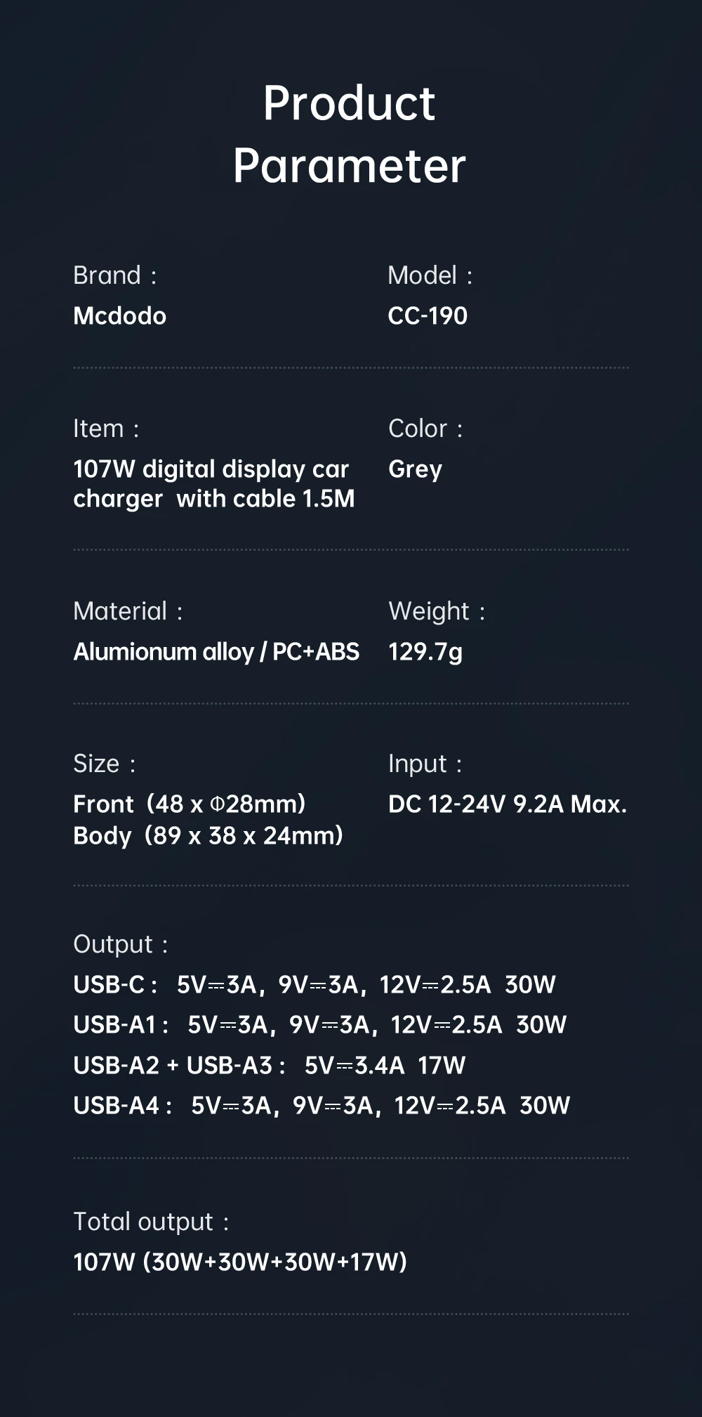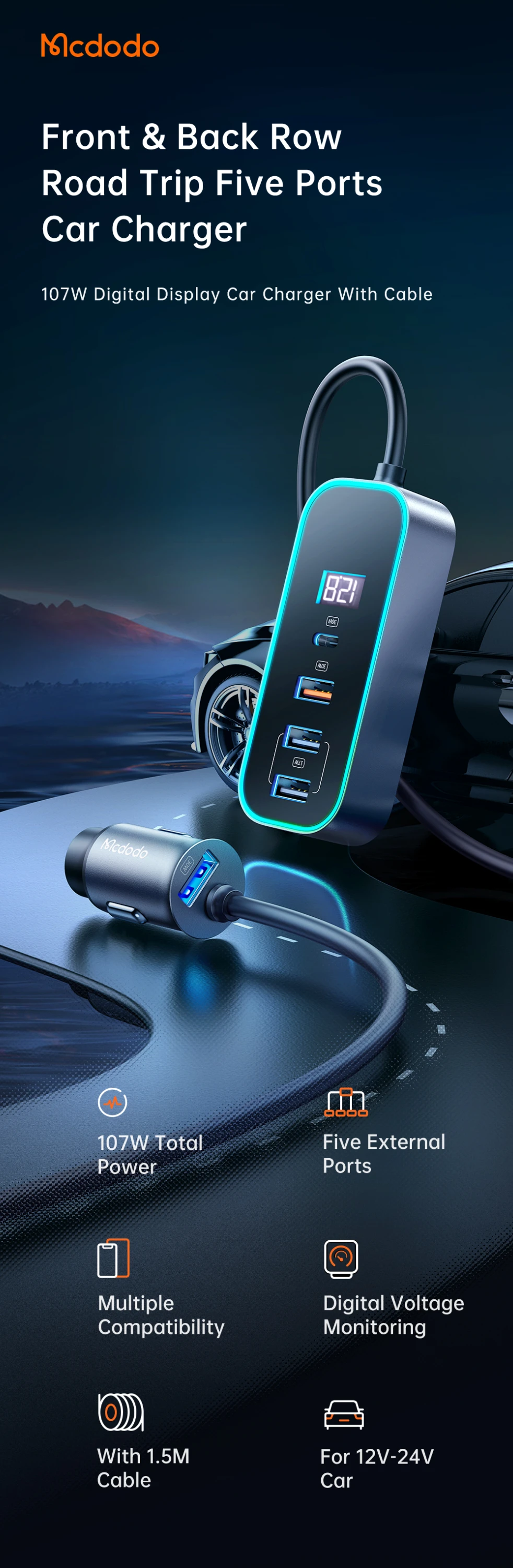 Mcdodo CC-1900 107W PD Type C Car Charger With Cable 1.5m Quick Charger For iPhone 14 13 12 11 Samsung Tablet Portable Phone Car Charger